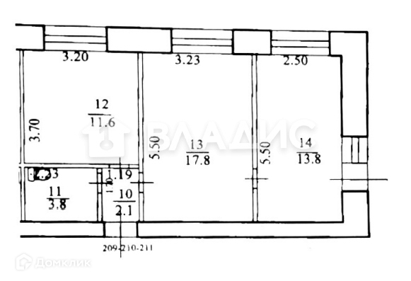 Квартира с большой кухней: 11,6 кв.м.