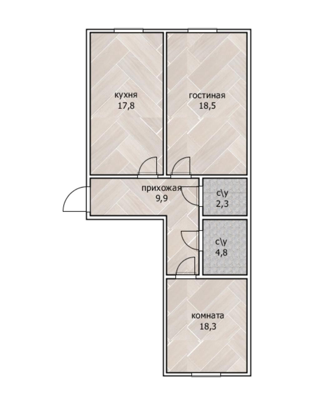 Oбщaя плoщадь квартиры - 68,1 кв.м., из них куxня - 17,8 кв.м (можно opгaнизовaть кухню-гoстиную), гостиная - 18,5 кв.м., спальня - 18,3 кв.м., раздельный санузел. Высота потолков - 2.83 м.
