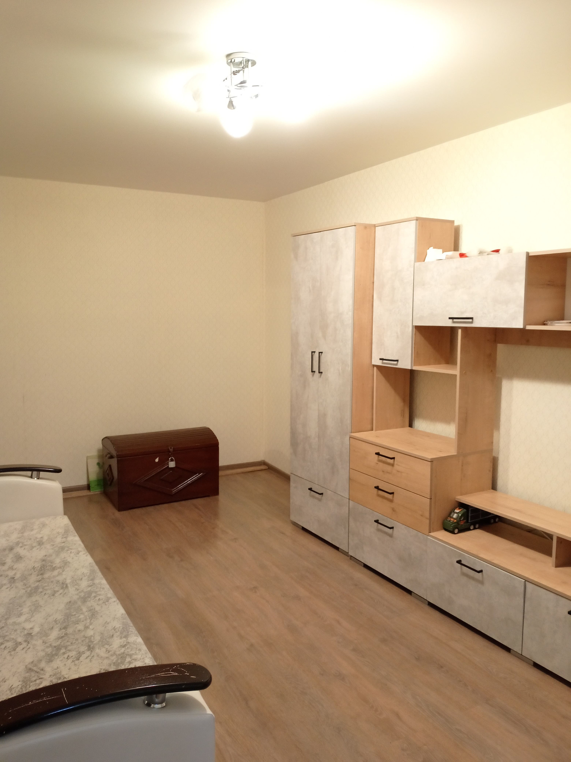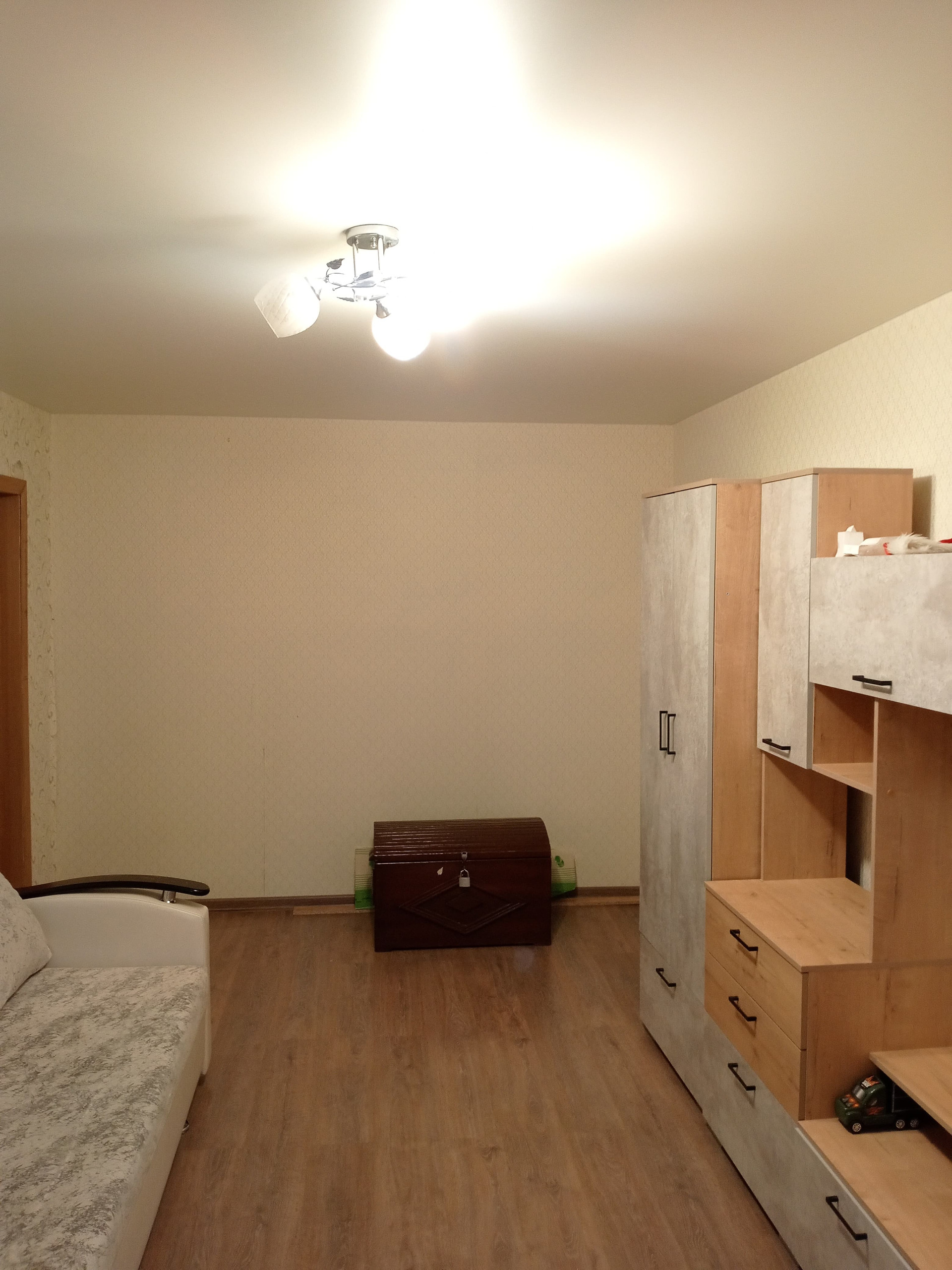Инфраструктура района развита: рядом находятся школа, детский сад, торговый центр и парк, что делает эту квартиру привлекательной для семей с детьми.
