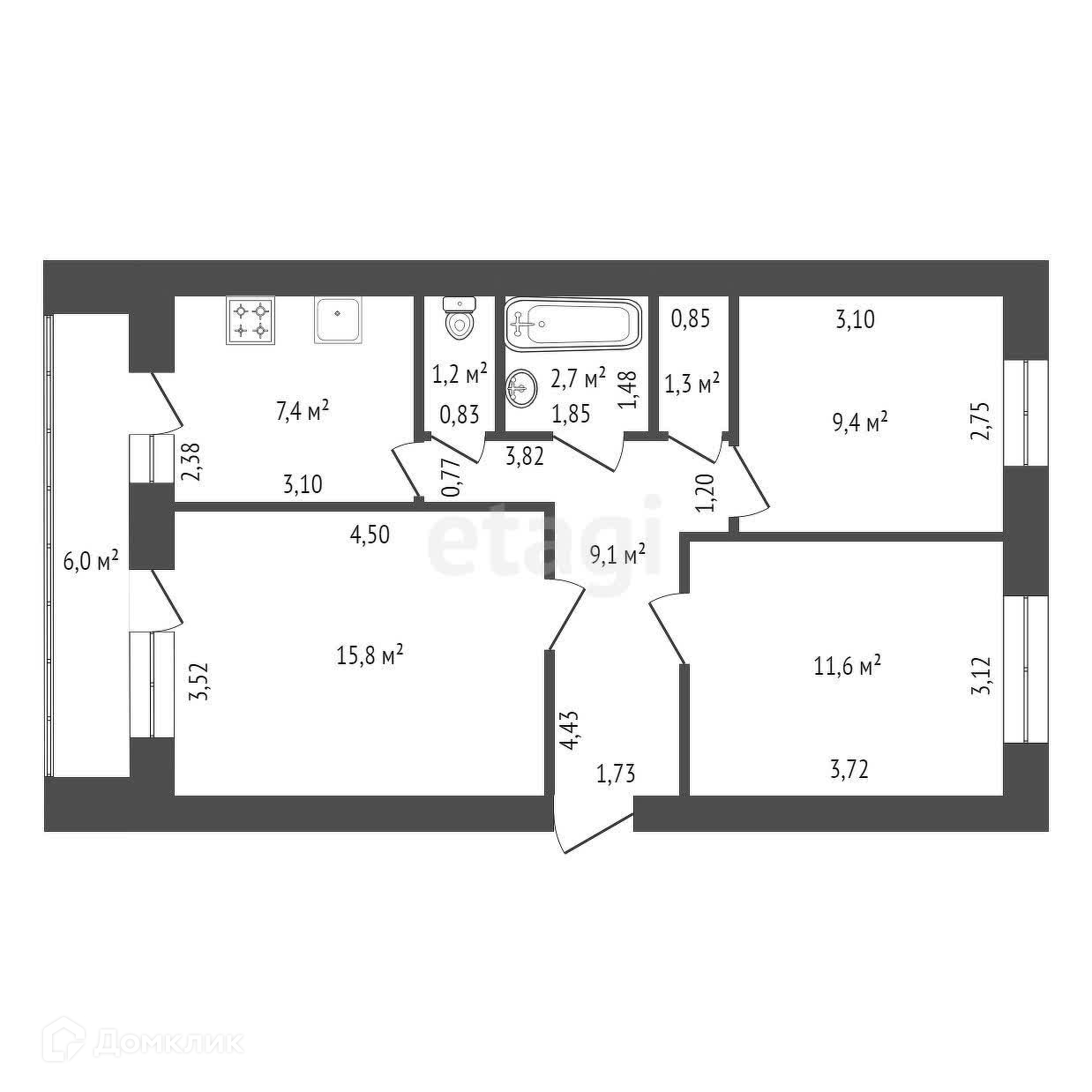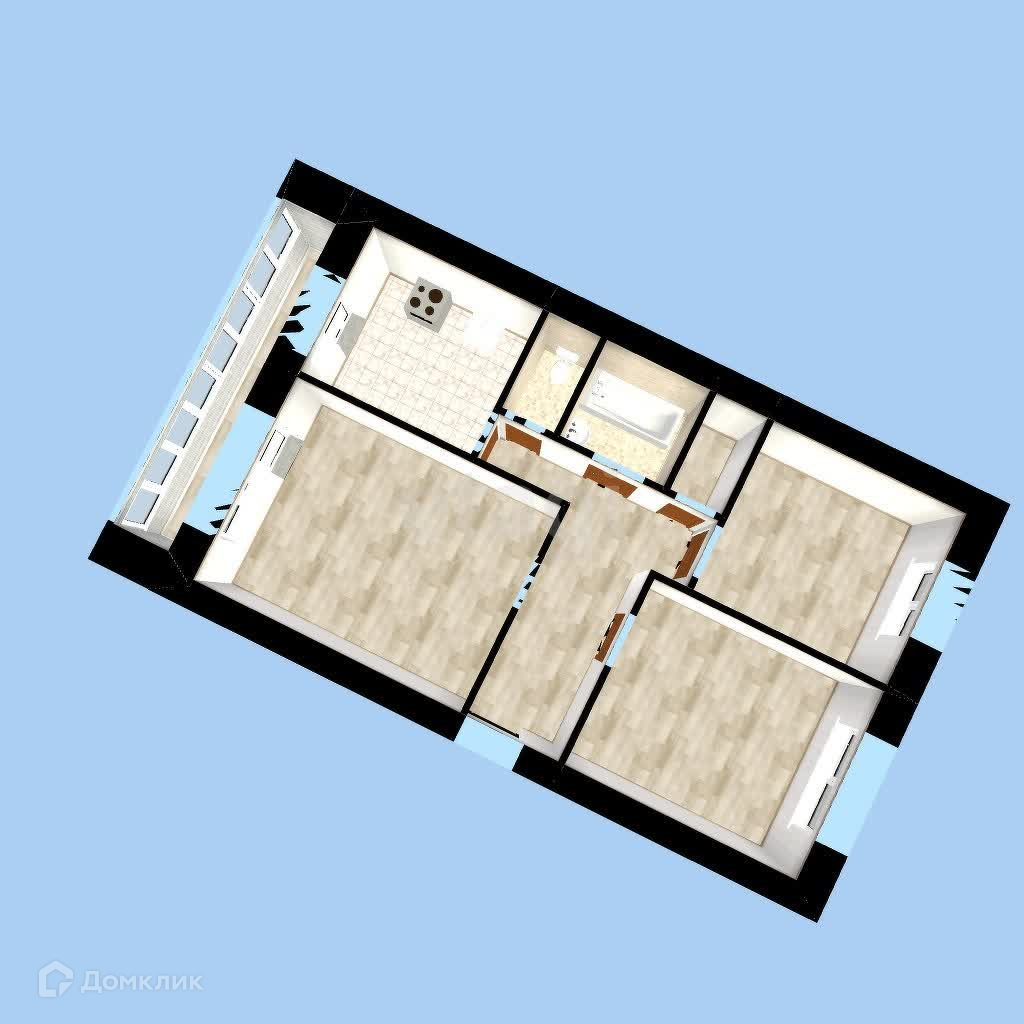Продается 3-х комнатная квартира на 3/6этажного кирпичного дома 1997 г. постройки, в Кировском районе г.Уфы по улице Элеваторная.