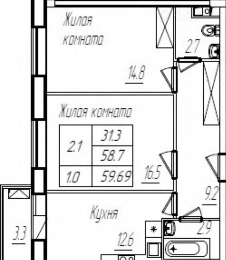 Жилая площадь 31.3 м2