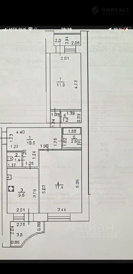 Общая площадь 54.5 м2