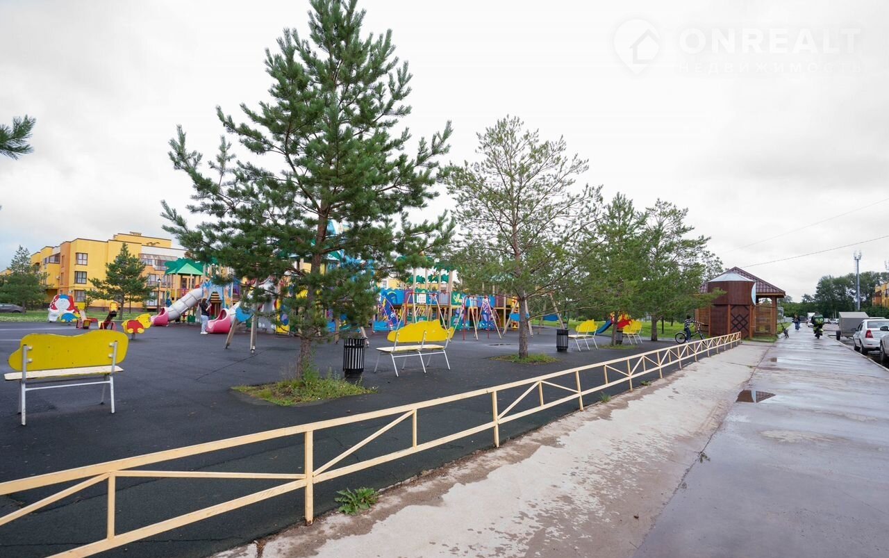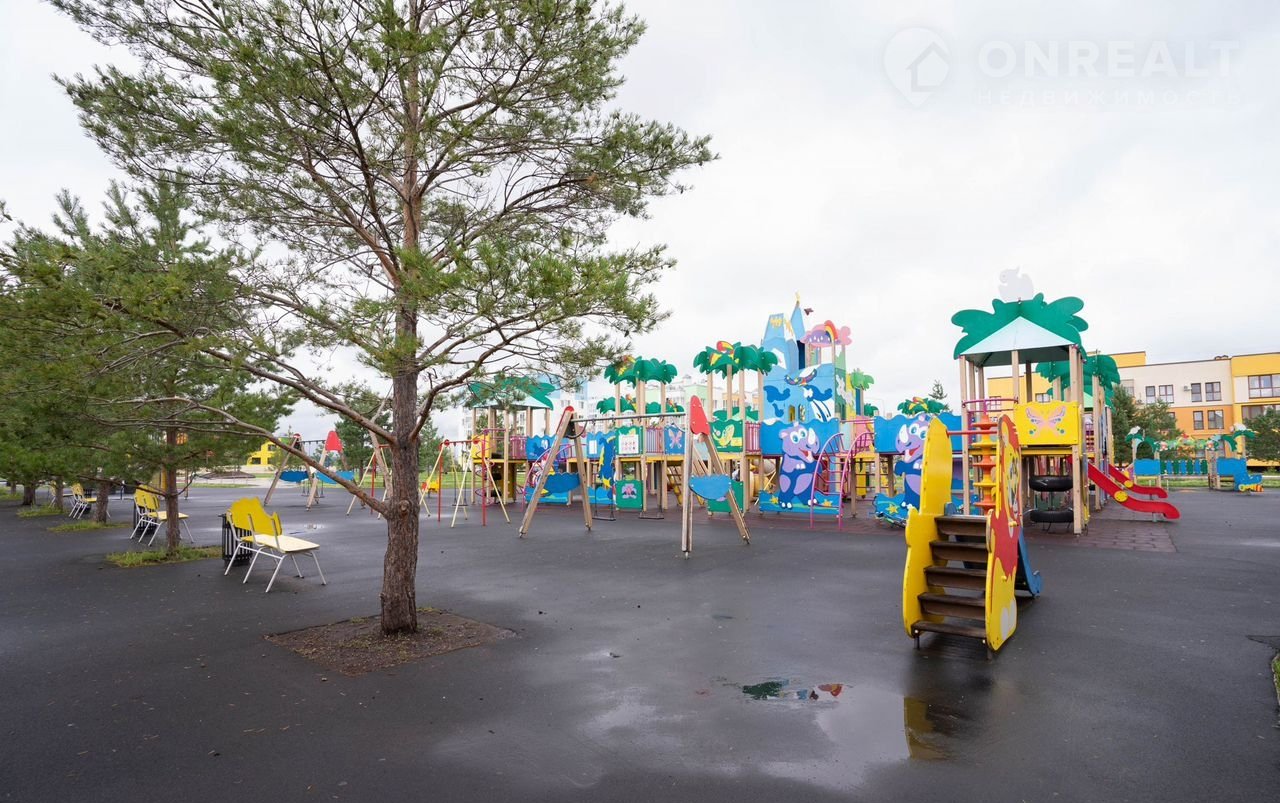 На территории ЖК есть свой детский сад, парк с детскими и спортивными площадками. Школа - в 10 минутах ходьбы (школьный автобус забирает детей прямо с территории ЖК).
