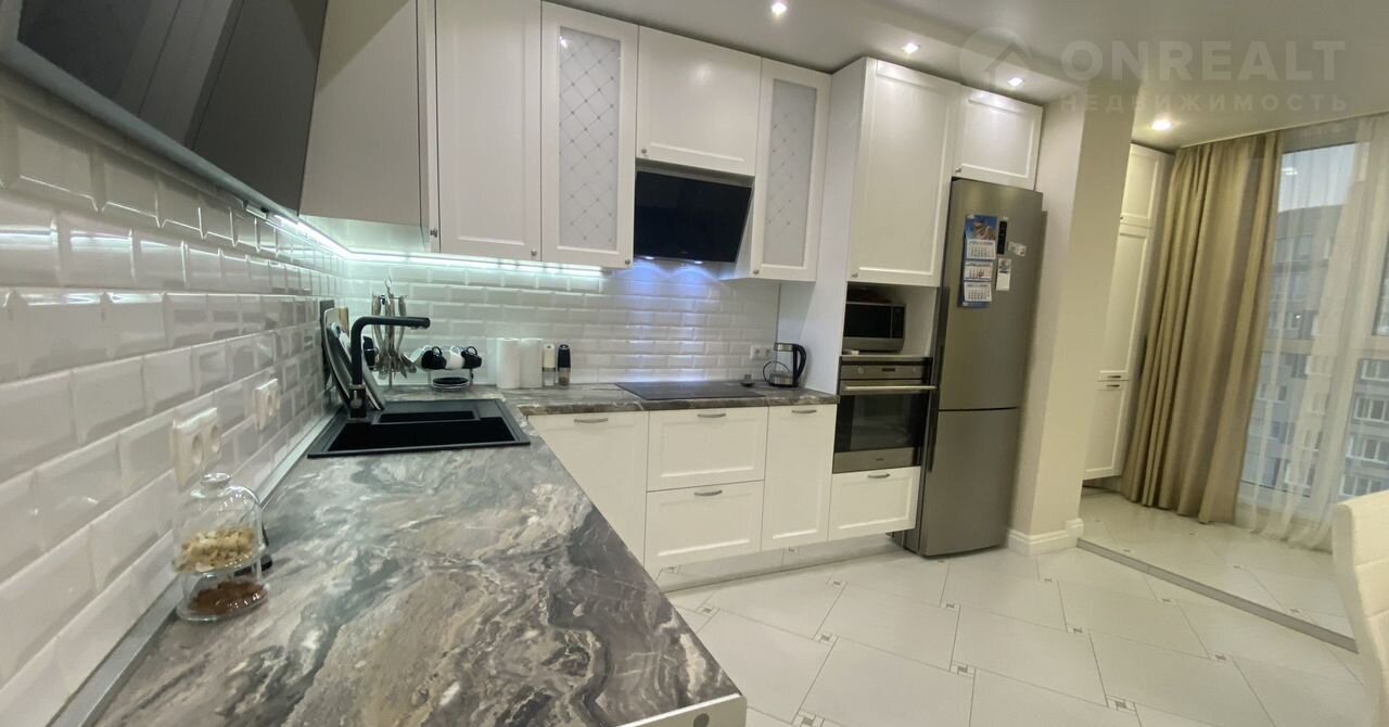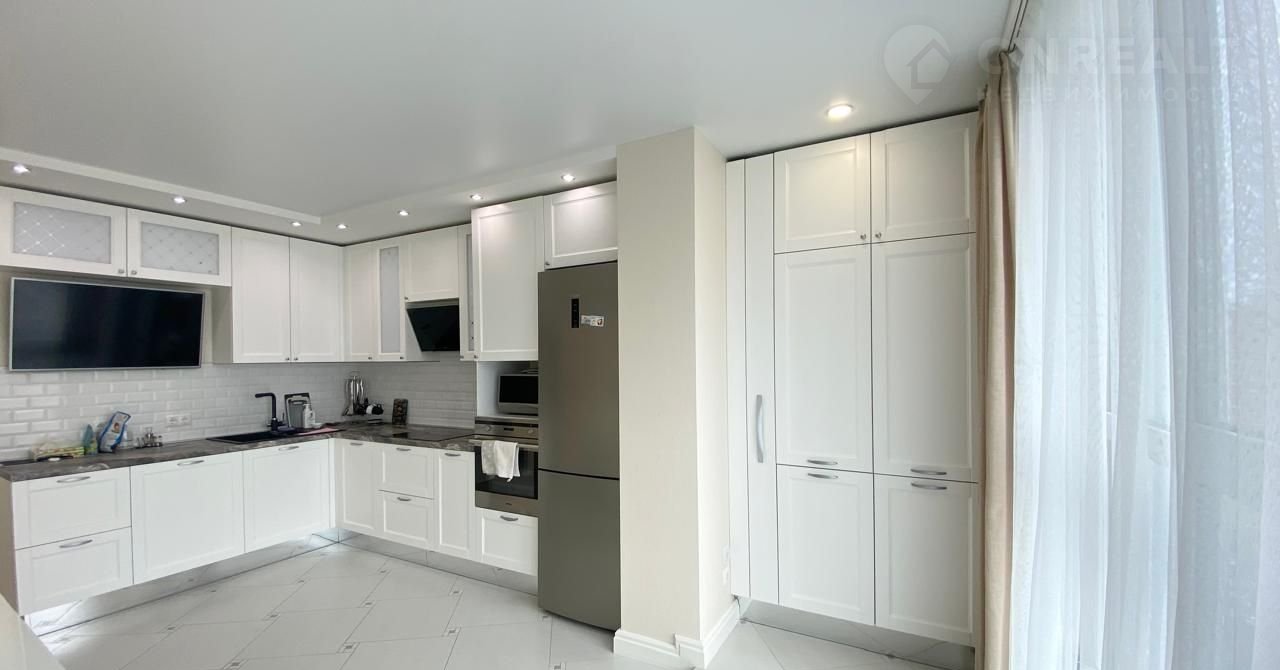 ✔️ Просторная кухня гостиная оборудованная кухонным гарнитуром, бытовой техникой увеличенная за счет лоджии площадью 19++++кв.м.