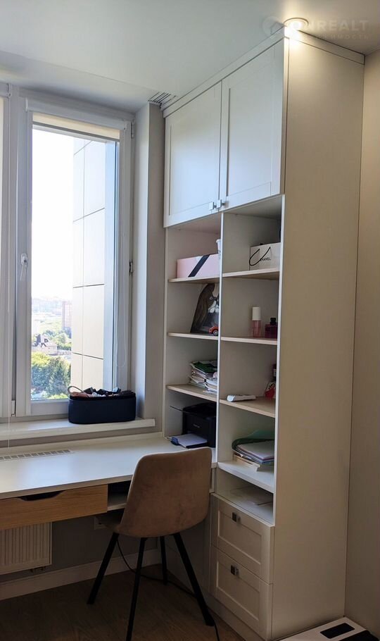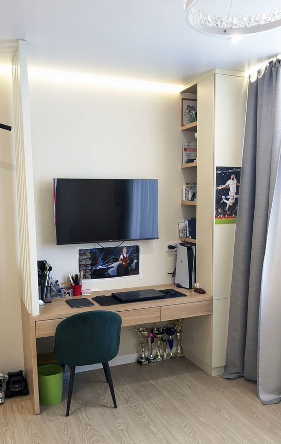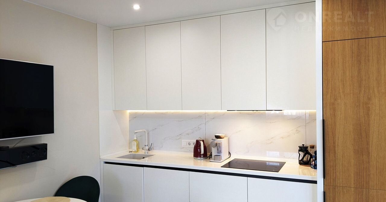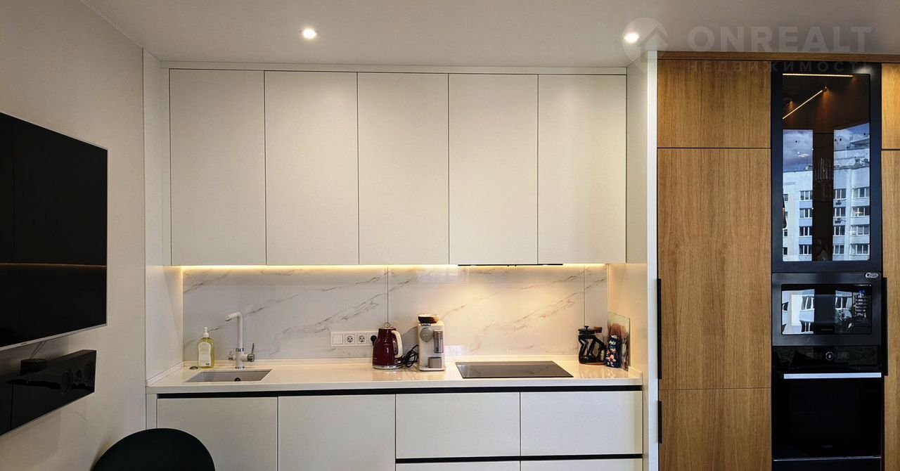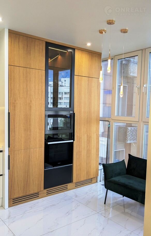 Квартира в отличном состоянии, ремонт выполняли по дизайн проекту, все готово для комфортного проживания, в квартире остается встроенная мебель (кухонный гарнитур, шкафы) с техникой: холодильник,  посудомоечная машина. варочная панель, духовой шкаф, вытяжка, микроволновая печь, кондиционер, водонагреватель.