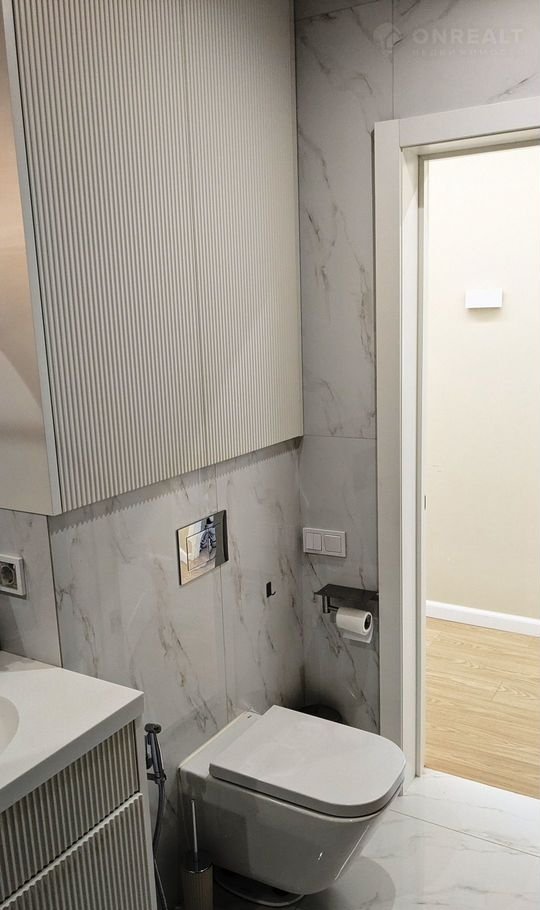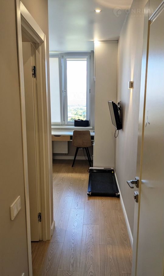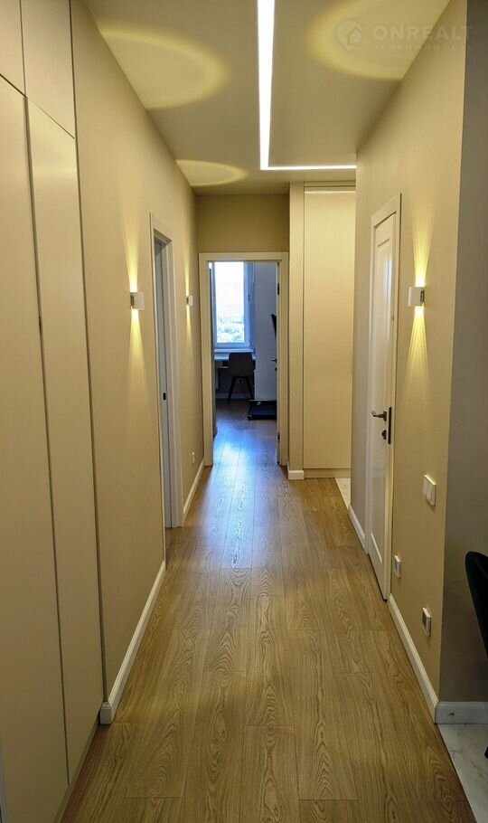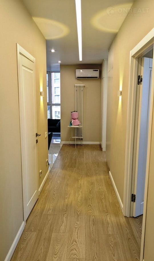 Площадь квартиры - 67,8 кв.м. Квартира имеет следующую планировку: кухня-гостиная - 15 кв.м, жилая площадь - 40 (14,9+13,2+12) кв.м, есть гардеробная. Установлены теплые полы. Окна смотрят во двор, на 3 стороны, из окон открывается красивый панорамный вид. Сан узел (5 кв.м) совмещен.