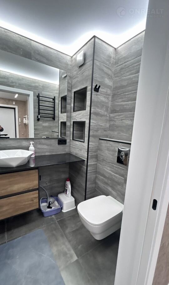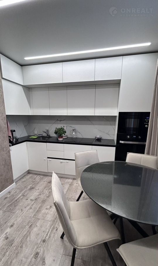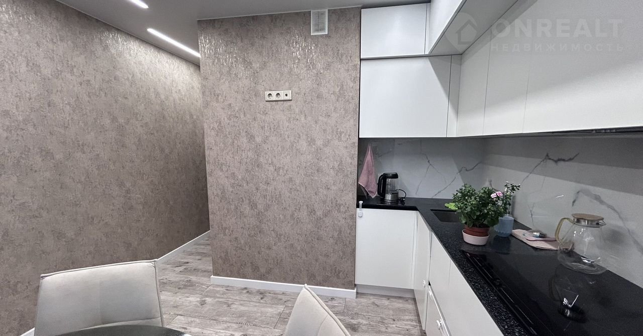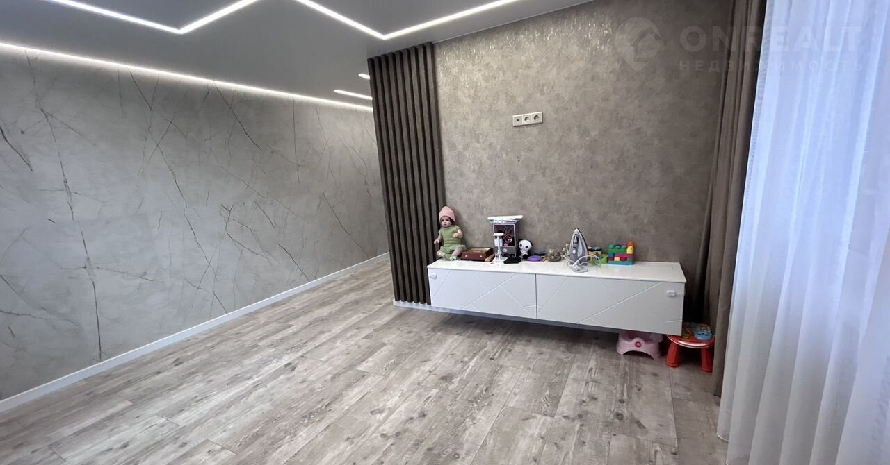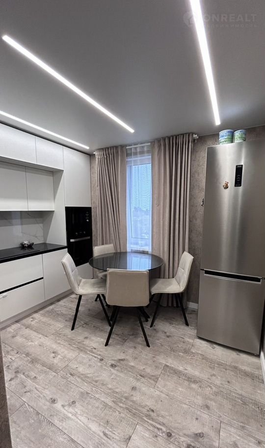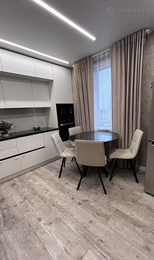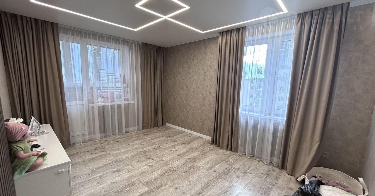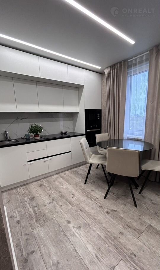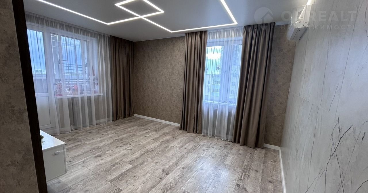 В квартире сделан современный дорогой ремонт из качественных и дорогих материалов. Натяжной потолок с современным дизайном освещения по всем комнатам в квартире. лоджия утеплена и обшита.Современный дизайнерский кухонный гарнитур. на полу плитка, в санузле дорогая мебель для ванной. Записывайтесь на просмотры