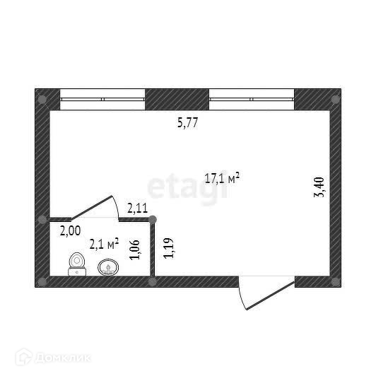 Санузел отдельный 2,1 квадратных метра.