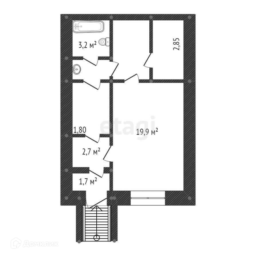 Общая площадь 44.5 м2