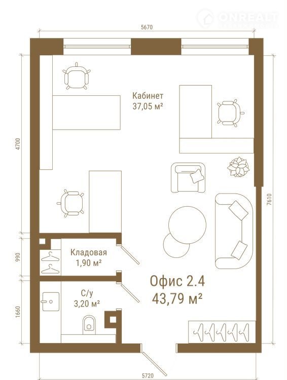 Общая площадь – 43,79 м²