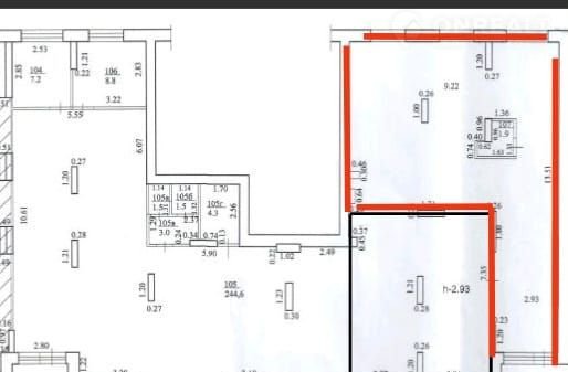- Высота потолка: 2,93 м