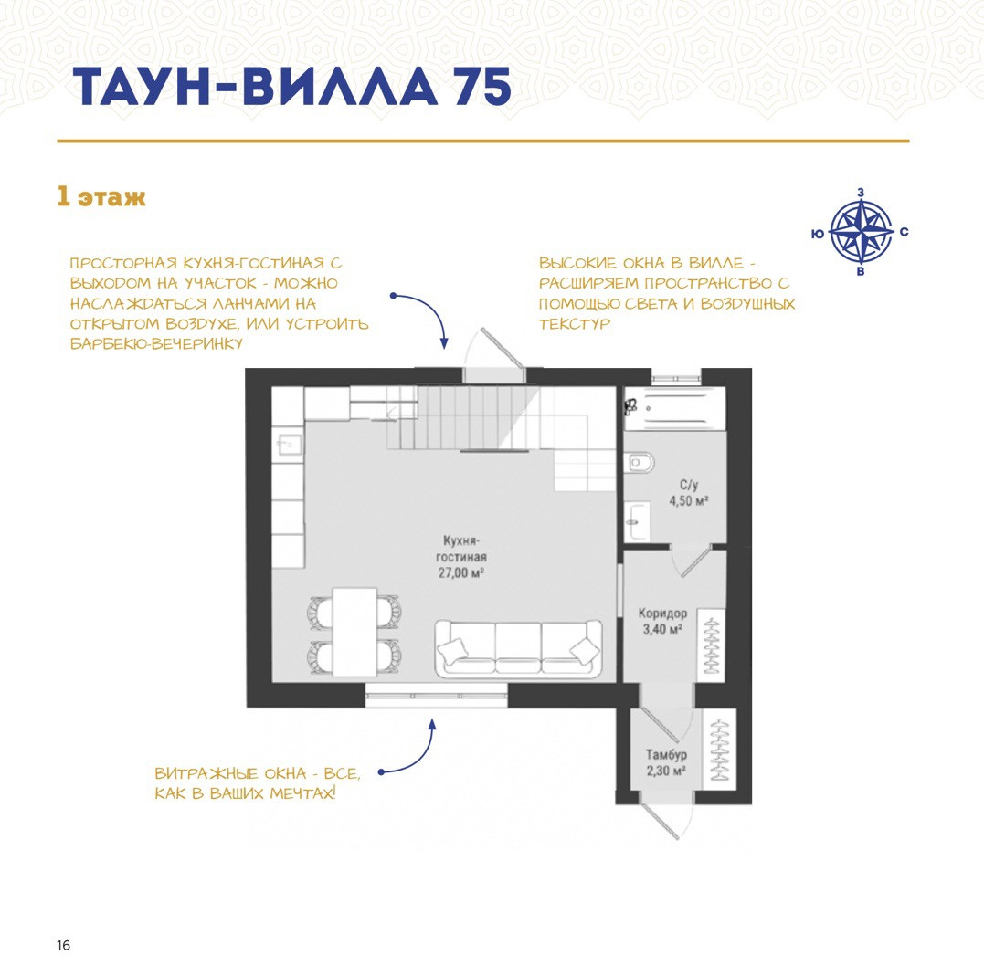 Общая площадь 75 м2