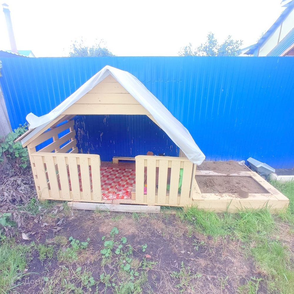 Крыша высокая, обшита профнастилом.