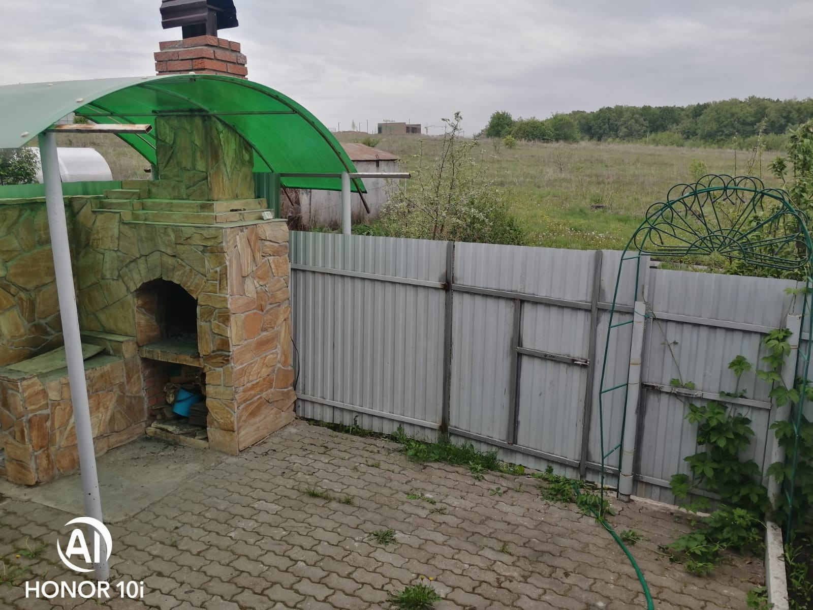 На заднем дворике построена печь для приготовления шашлыка и блюд в казане.