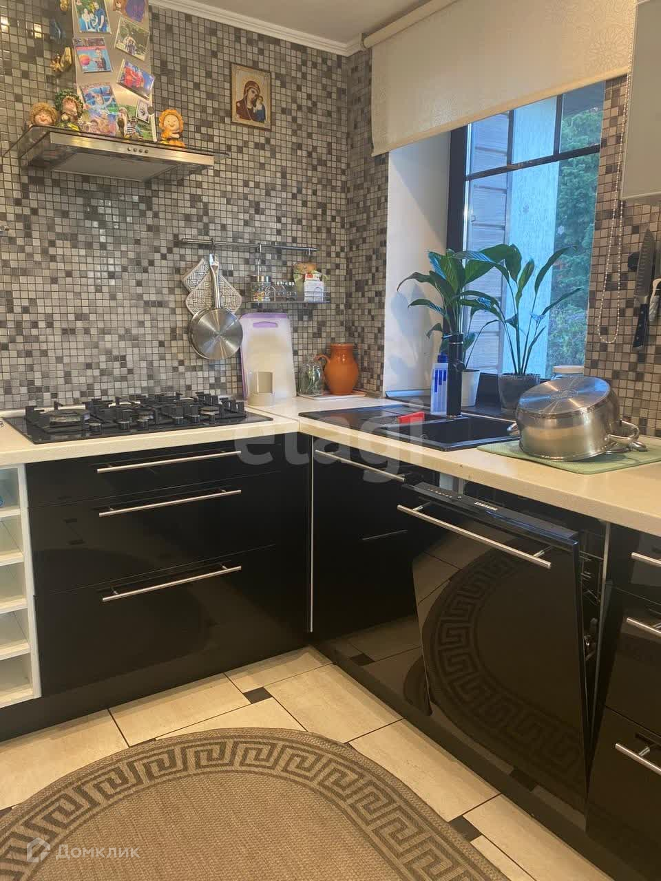 На кухне установлена вся необходимая встроенная техника, включая плиту Bosch с 5 комфорками, посудомоечную машину, духовку и микроволновку.