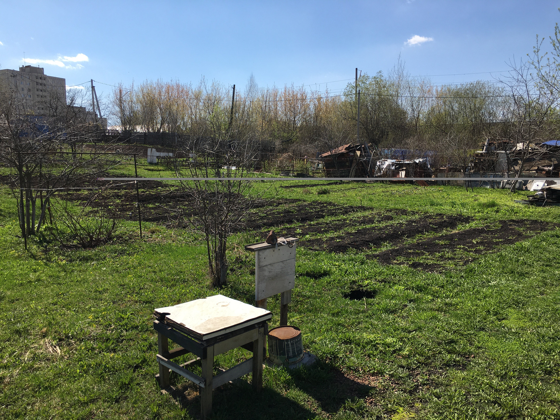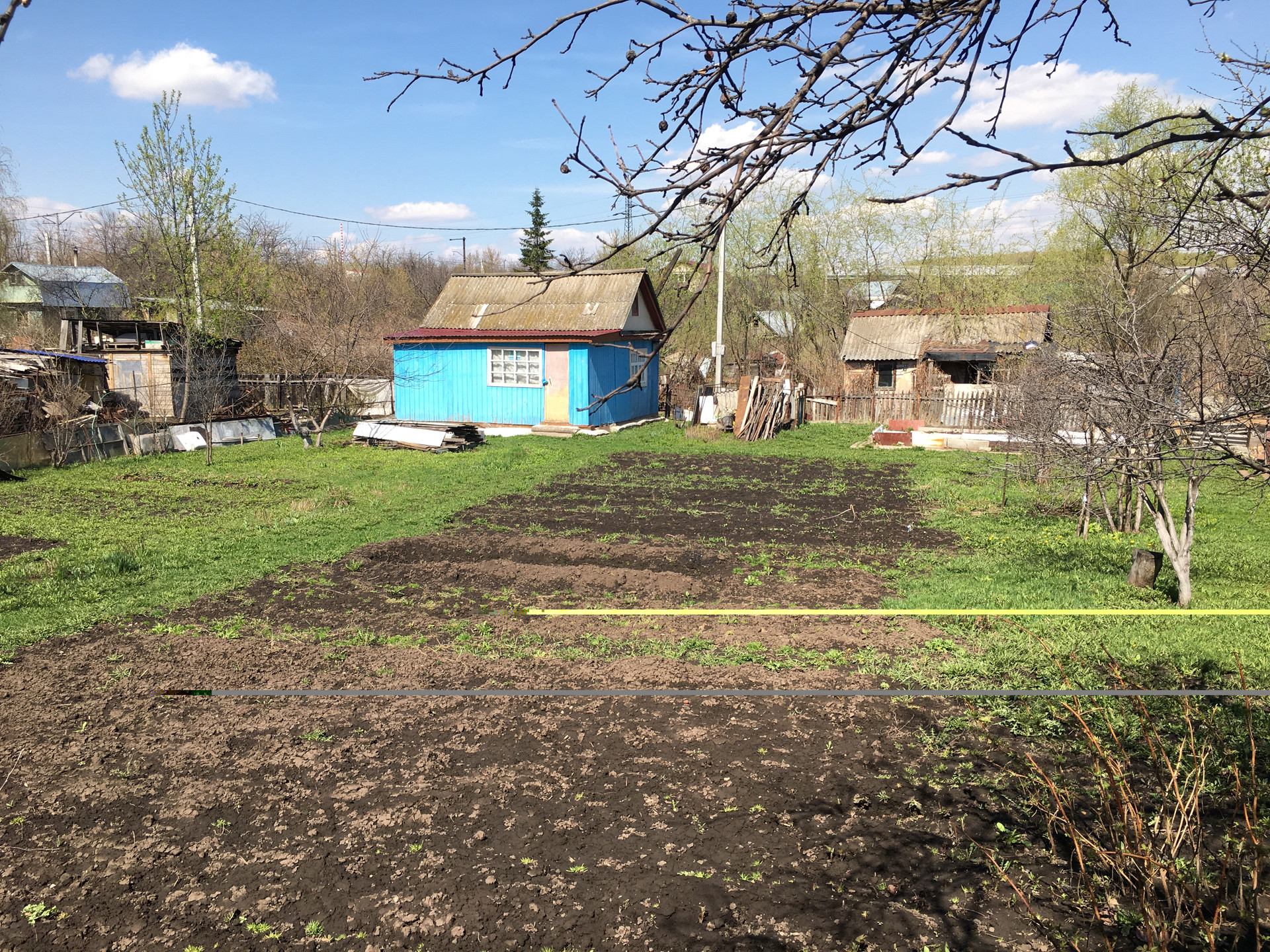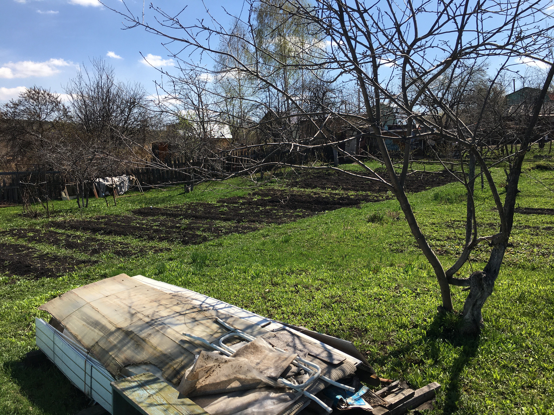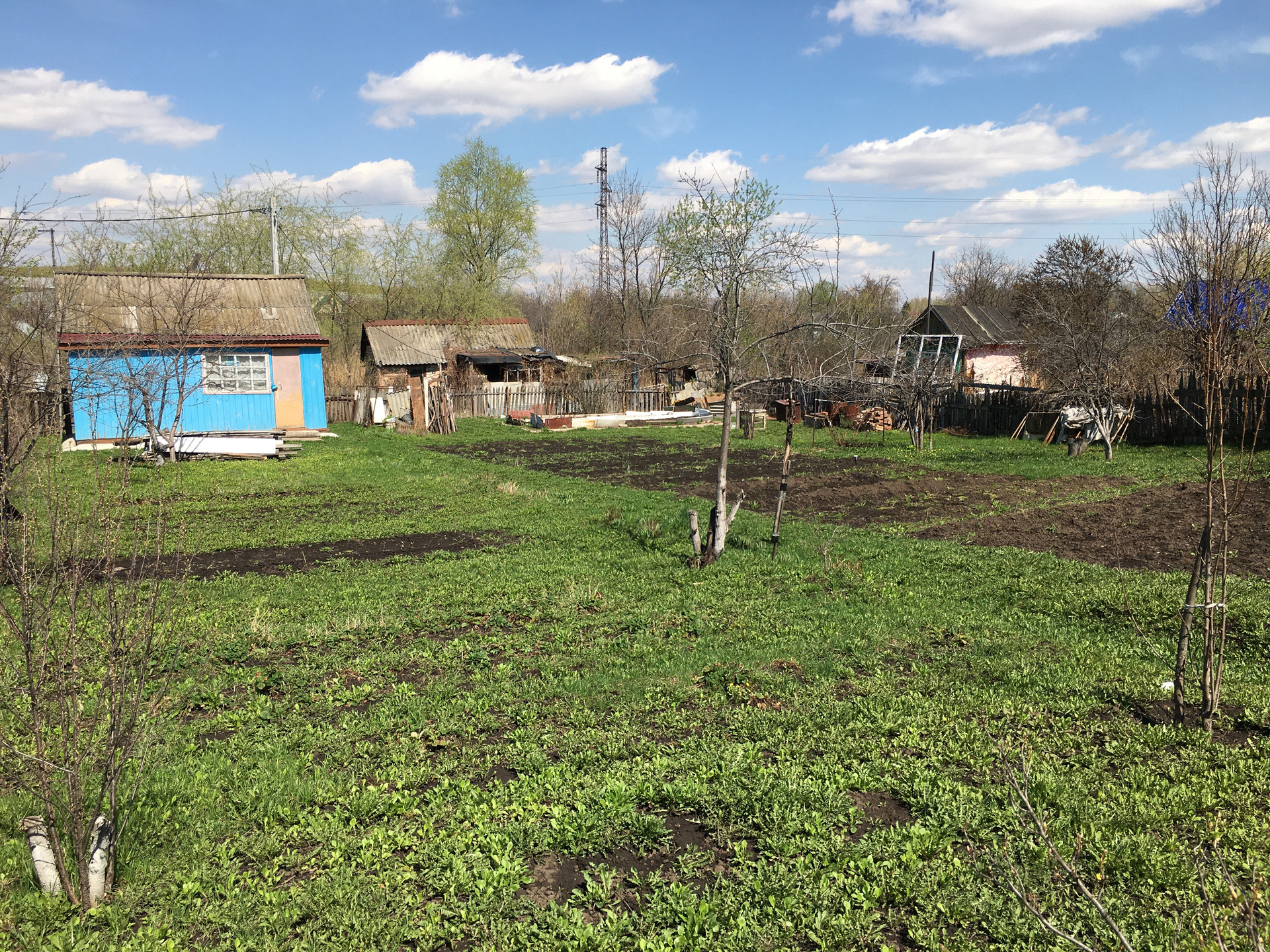 Земельный участок прямоугольной формы - ровный , огорожен забором , насаждения слива, яблони, вишня, с-у на улице , вода -колодец , в доме электричество .