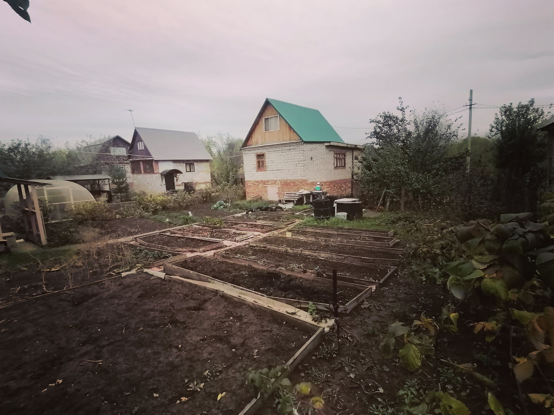 Напротив еще участок 1,5 сотки огороженный: там у нас парковка и клубника.