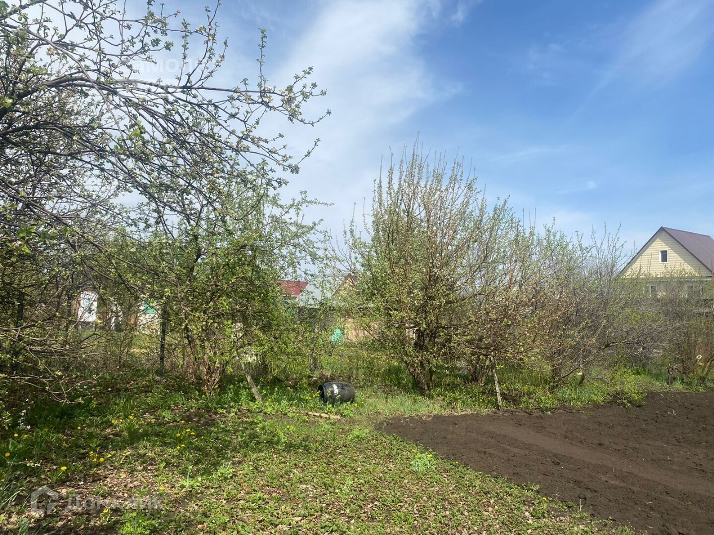Участок 8 сот. Ездят автобусы. На участке много ягод, яблони, вишня, слива. Ухоженная земля. Электричество, газ по улице, скважина. Есть домик, можно ночевать.