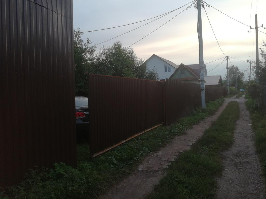 Огорожен с двух сторон профнастил, две стороны сетка рабица