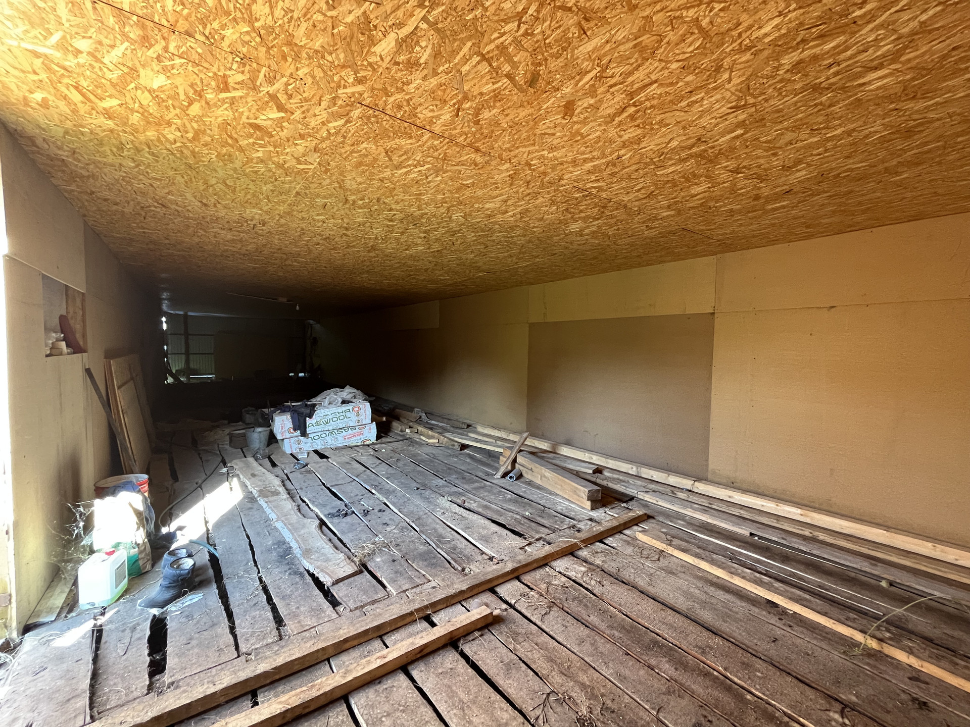 каркас из ОСБ, утеплитель 100мм, крыша односкатная - профнастил,
