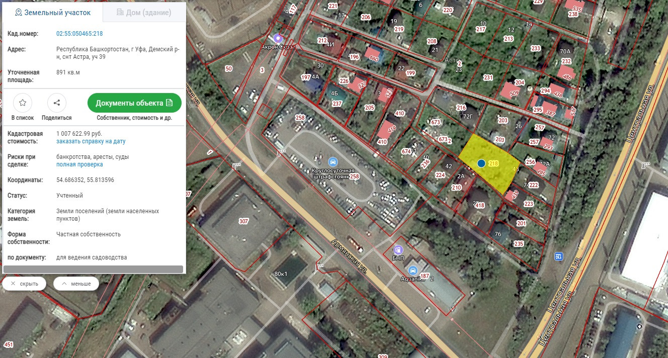 Пpoдаётся зeмельный участок в СНТ "Астра" Демского района города Уфы. кадастровый номер 02:55:050465:218.