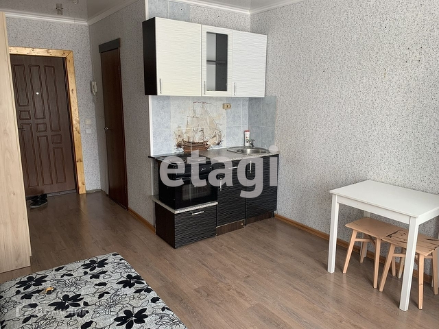 Сдам студию на длительный срок. В квартире кухонный гарнитур, стол, шкаф, диван, стиральная машина, холодильник, плита, микроволновка. Санузел совмещённый, отделан плиткой. Оплата + счётчики, залог за пол. месяца.