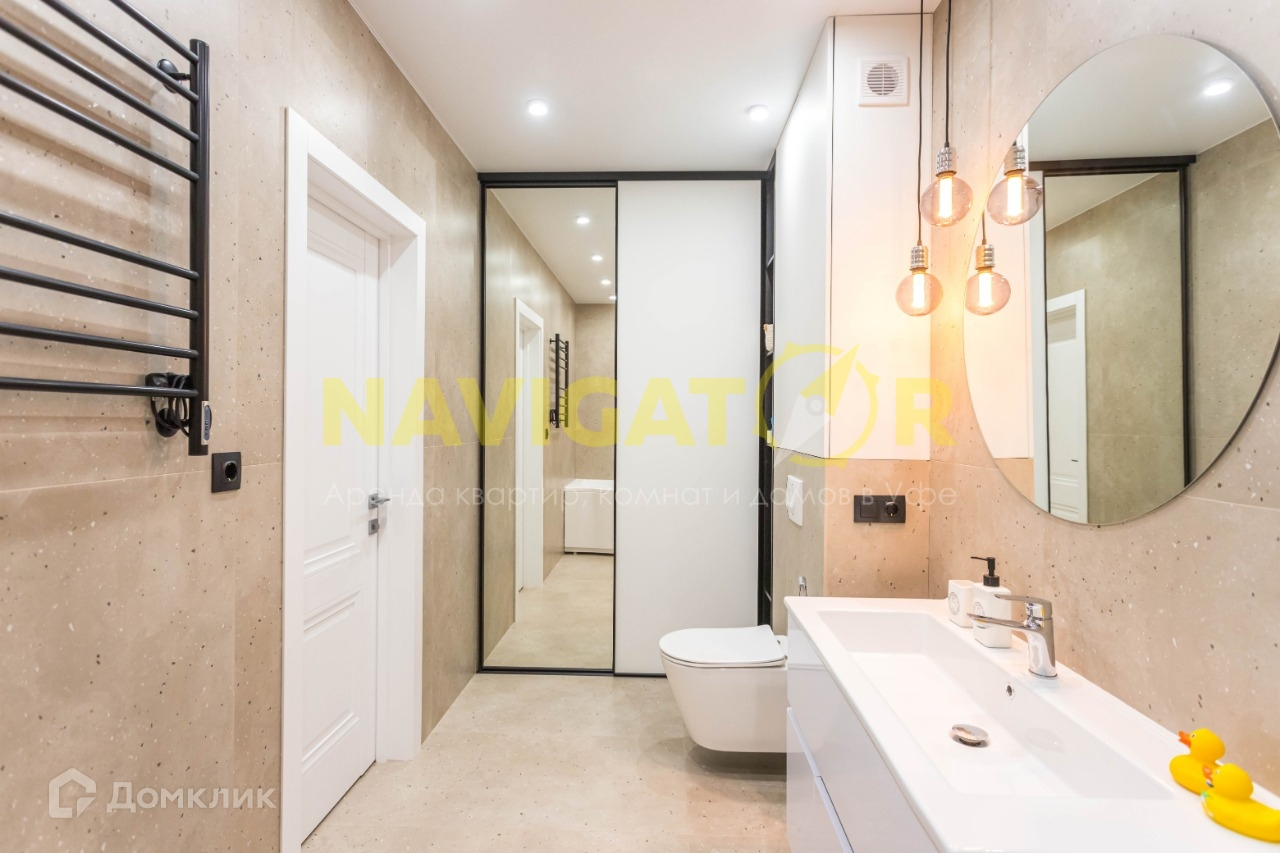Номер объекта в нашей базе № 110463 Готовая к проживанию квартира В ЖК Символ изумительным панорамным видом на город и реку Белая.  ПЛАНИРОВКА: - гостиная и кухня в пространстве единой комнаты общей площадью 22,7 кв.м., - 2 спальных комнаты, в мастер-спальной двуспальная кровать с матрасом и прикроватными тумбами, в детской/кабинете шкаф и диван, - два санузла, один с душевой, в большом санузле - ванная, - большая гардеробная с наполнением.  ОТДЕЛКА: - кухонный гарнитур укомплектован варочной панелью, посудомоечной машиной, духовым шкафом, вытяжкой и холодильником, все производства Electrolux (Швеция), - цельнолитая каменная столешница кухонного гарнитура, - фильтр очистки воды, - сантехника, включая ванну, производства Swedbe (Швеция), - в одном из санузлов за дверями шкафа-купе предусмотрены выводы коммуникаций для установки водогрейного котла и стиральной/сушильной машины, - укомплектованная гардеробная Ikea, - шкафы-купе производства Aristo (Франция), - кондиционер, - теплый пол в прихожей и санузлах, - откосы окон отделаны натуральным шпоном дуба, - продуманный свет, проходные выключатели и многое, многое другое.  ВСЕ НОВОЕ. НИКТО НЕ ПРОЖИВАЛ. ТЕХНИКА НА ГАРАНТИИ. КВАРТИРА ПОЛНОСТЬЮ ГОТОВА ДЛЯ ПРОЖИВАНИЯ.  Квартира оборудована индивидуальным счетчиком потребления тепловой энергии, на радиаторах отопления установлены терморегуляторы. Класс энергоэффективности дома - В. В самые лютые морозы терморегуляторы установлены на 1 , этого достаточно, для того, чтобы поддерживать комфортную температуру в квартире.  В СОСТАВЕ КОМПЛЕКСА: Подземный паркинг с интеллектуальной системой доступа и беспылевыми полами. Система видеонаблюдения охватывает всю территорию жилого комплекса, включая прогулочную эспланаду, этажные холлы, подземный паркинг и общественные помещения. Подъезды оборудованы сервисными лифтами Kone , для перевозки крупногабаритных грузов и стройматериалов. Первые этажи комплекса отведены под кафетерий, кофейню, булочную, салон красоты и торговую галерею.  ДЛЯ ОТДЫХА И ПРОГУЛОК: Благоустроенная парковая зона на территории примыкающей к склону реки Сутолоки, с выходом на Соборную мечеть и Монумент дружбы. За 5 минут можно выйти на благоустроенную набережную реки Белой.  - Остановка транспорта Монумент Дружбы и Аптека 2;  - Рядом детский сад 10 и 53;  - Гимназия 11 и школа 19;  - Удобный выезд на Проспект Салавата Юлаева;  Возможна оплата по безналичному расчету.  Успейте снять квартиру мечты уже сегодня!