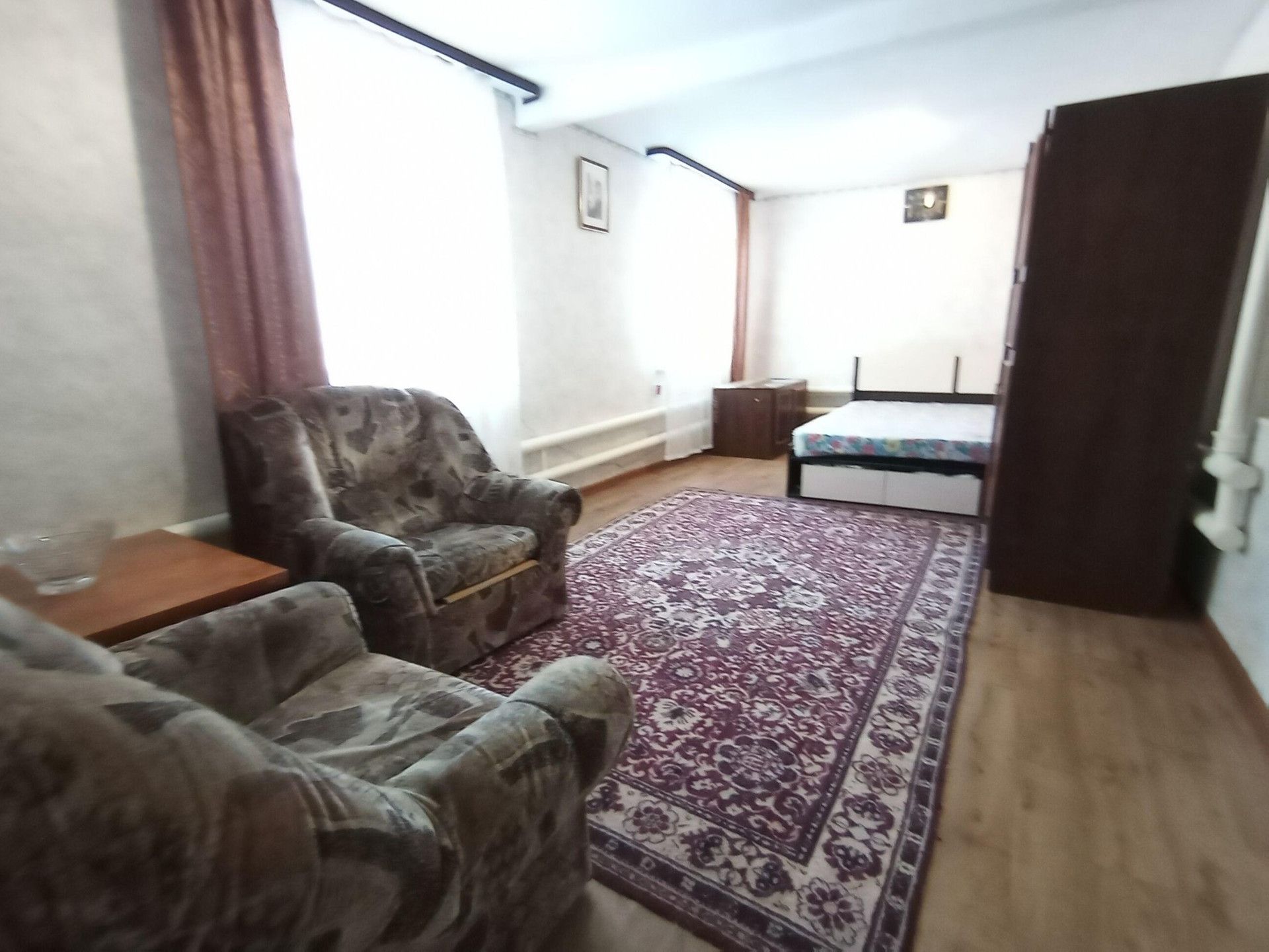 Сдам однокомнатную квартиру в частном доме Центр, остановка Дзержинского. Вся мебель и бытовая техника. На любой срок. Проведён интернет и кабельное тв. Вода холодная и горячая в доме. Есть Баня. Туалет на улице. Рядом остановка.