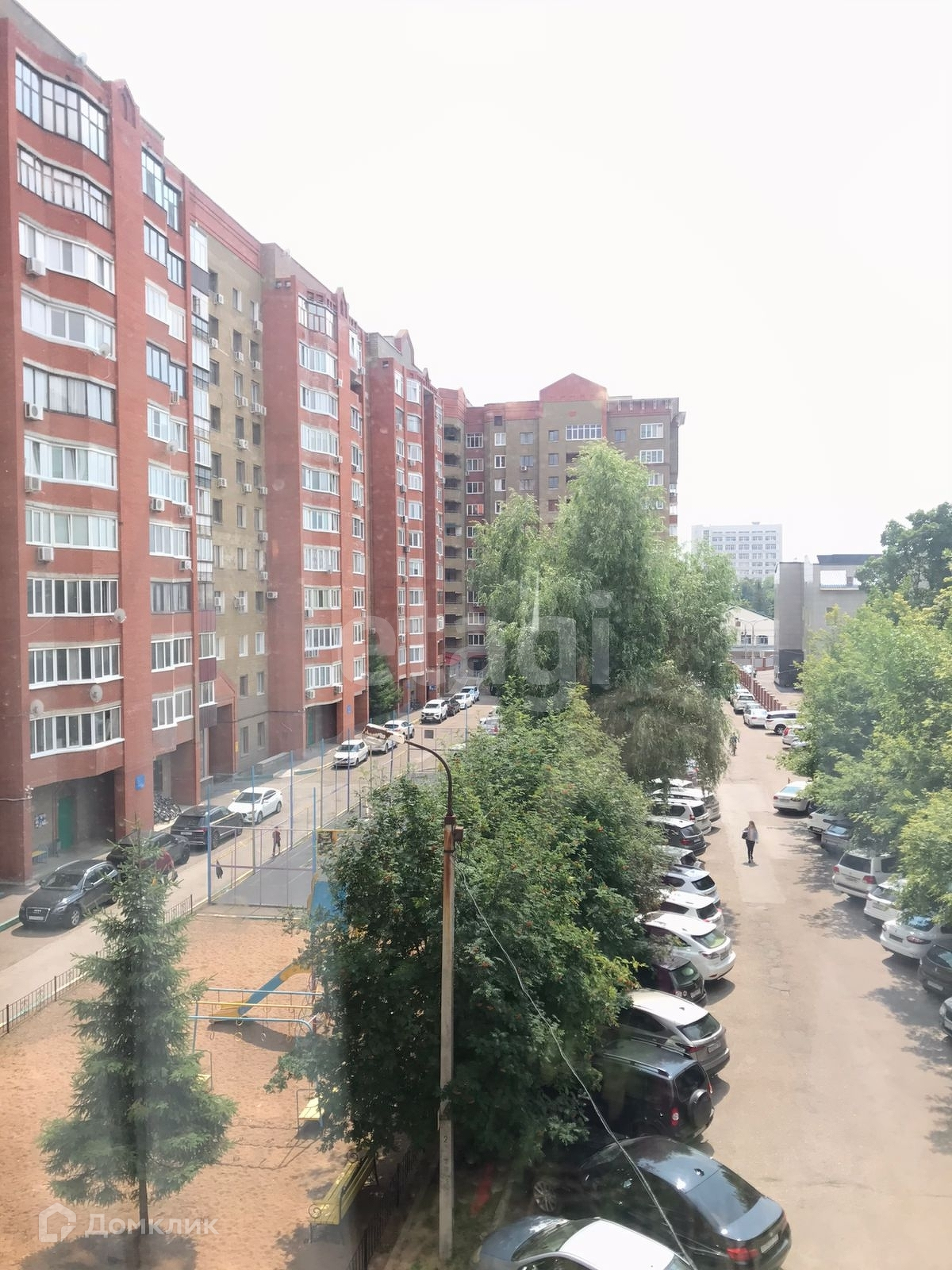 Во дворе детская площадка, огороженные футбольная/баскетбольная/хоккейная площадка.
