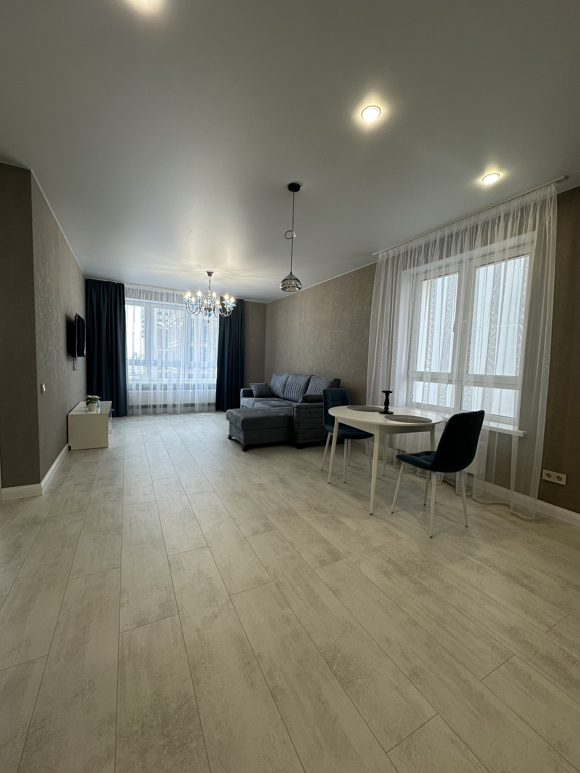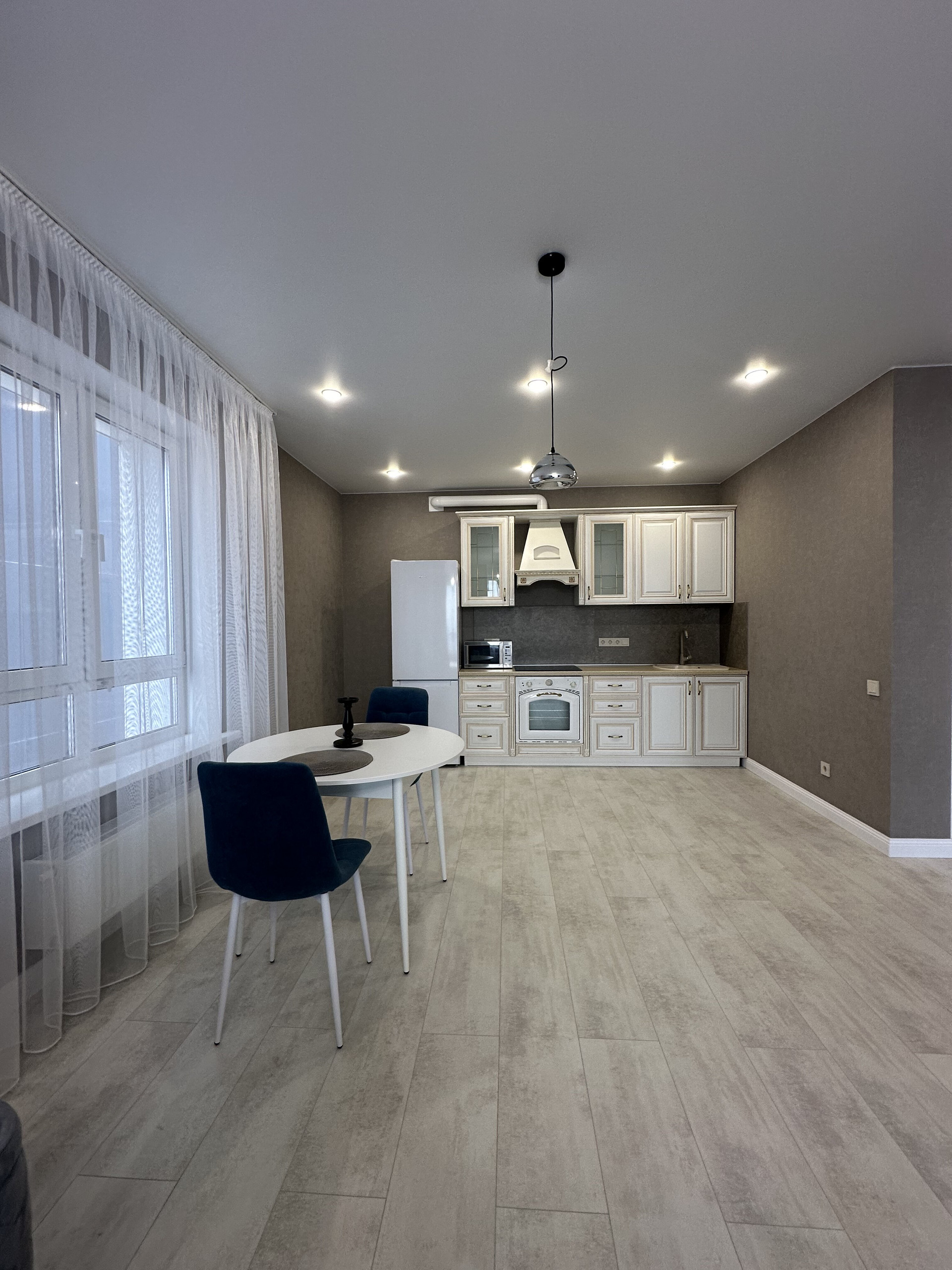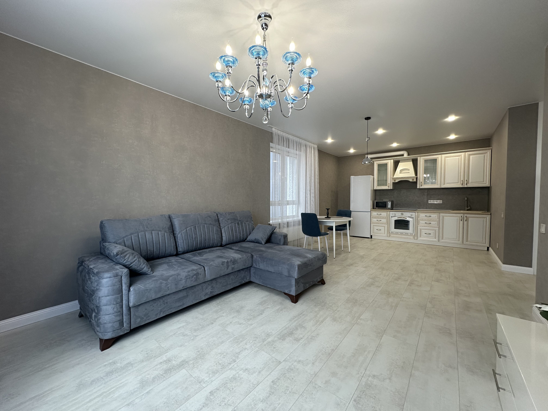 ✅ В квартире выполнен качественный евроремонт из дорогих материалов. В наличии стильная мебель на кухне и в комнате. Также в квартире есть вся необходимая бытовая техника: кондиционер, холодильник, телевизор и стиральная машина, водонагреватель, микроволновая печь, вытяжка. Ванная комната совмещена с туалетом и оснащена ванной. Все новое.