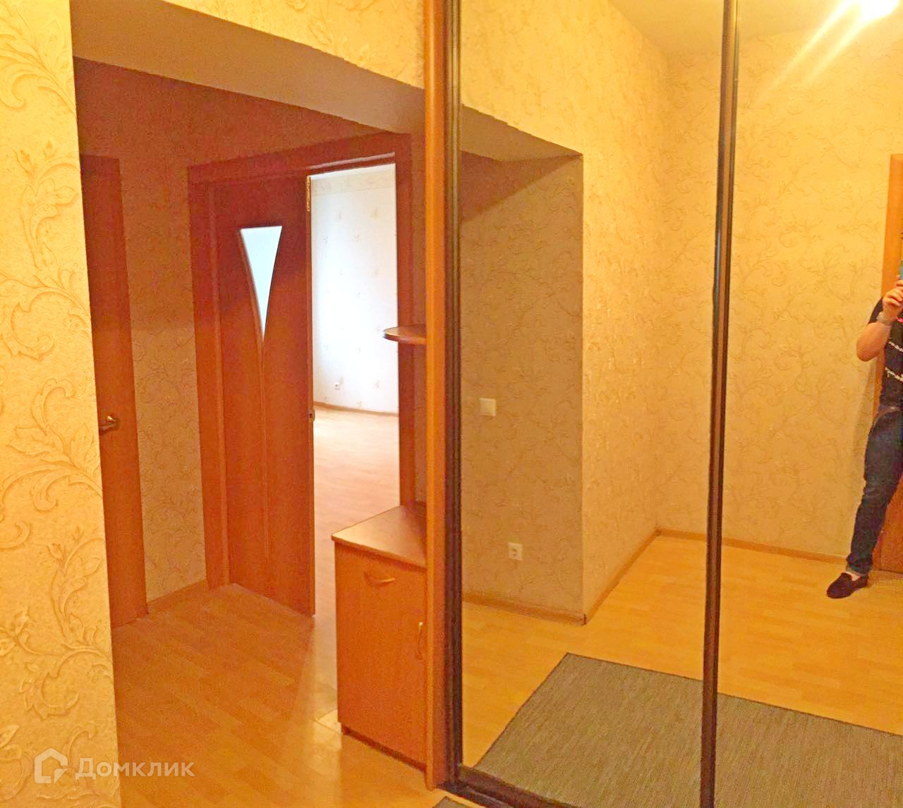 В коридоре имеется зеркальный шкаф-купе, две тумбы.