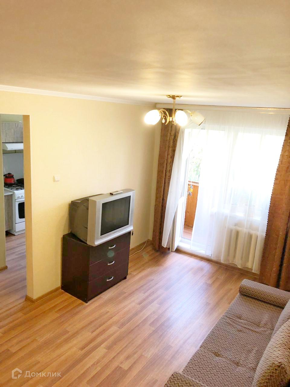 Имеется застеклённый балкон, выход из комнаты.