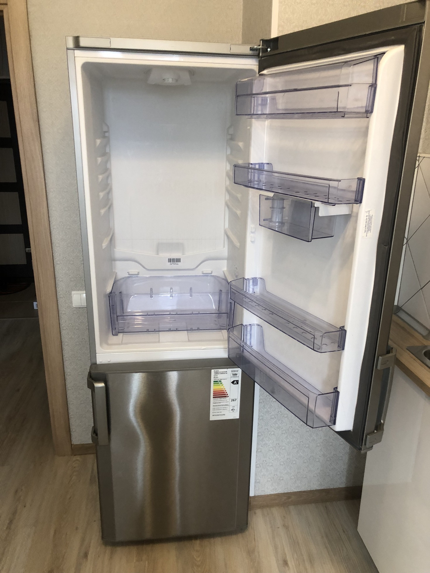 В квартире евроремонт, встроенный кухонный гарнитур с техникой ( холодильник, микроволновая печь , плита, духовка)
