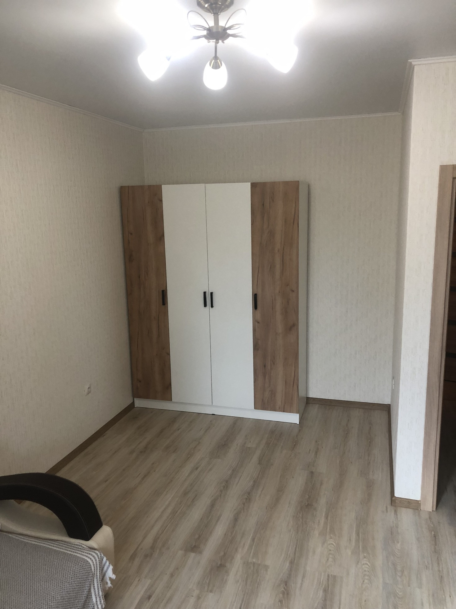 В комнате двухспальный диван шкаф до хранения одежды ;