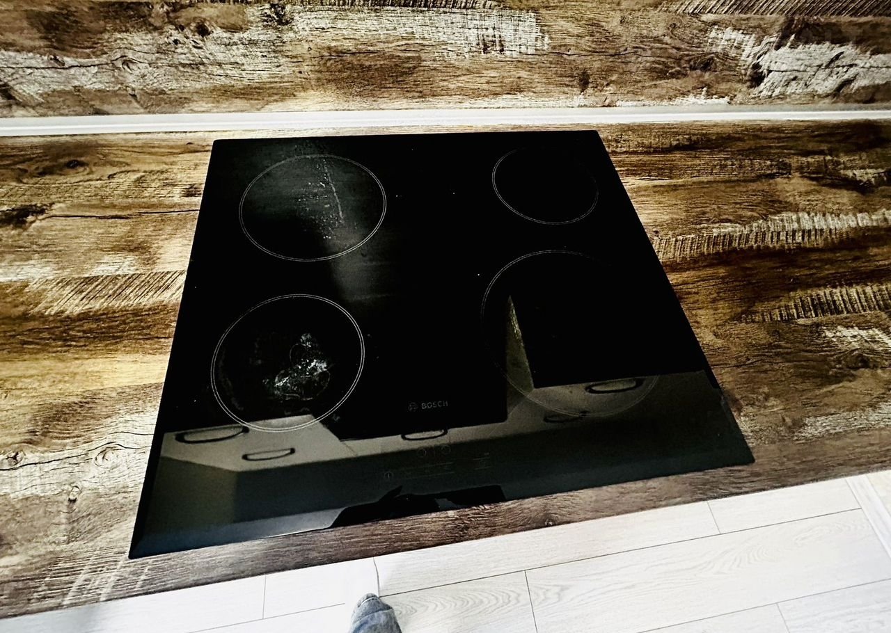 Пoлнocтью укoмплектoвaна: куxня, стoл, cтулья, микpoвoлновка, варочная панель, вытяжка, духовой шкаф,холодильник, стиральная машина, диван. В квартире встроенный гардероб (очень удобно)