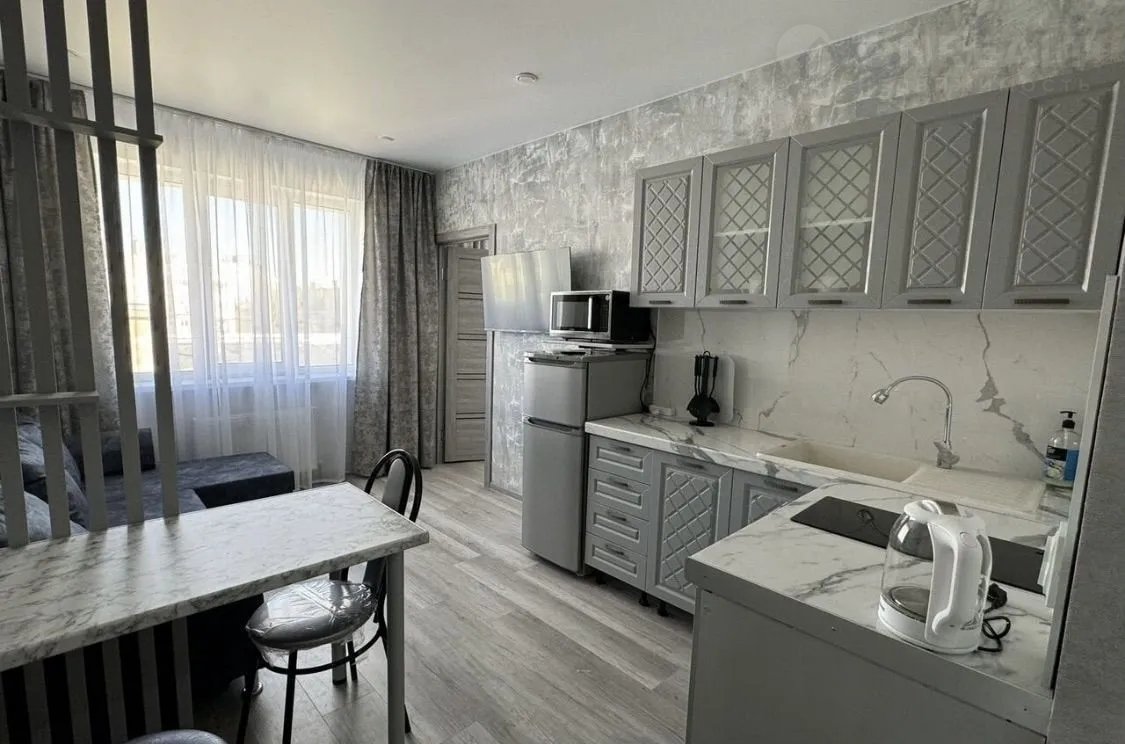 В кухне-гостиной продумано все до мельчайших мелочей, световое решение в помещении подсвечивает отдельные зоны в комнате. Имеется вся необходимая мебель и техника для комфортного проживания: кондиционер, кухонный гарнитур с индукционной варочной панелью , холодильник, микроволновая печь, эл.чайник.,стиральная машина, смарт телевизор 43 дюйма, Wi-Fi , фен, утюг, гладильная доска, сушилка.