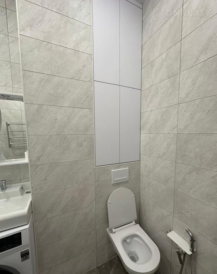 Санузел совмещенный, оснащен современной сантехникой и стиральной машиной. Дом оснащён пассажирским и грузовым лифтами, парковка за шлагбаумом во дворе.