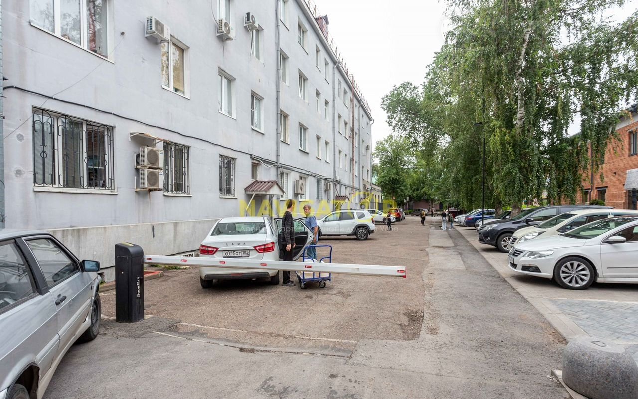 Во дворе парковка под шлагбаумом, спокойные соседи.