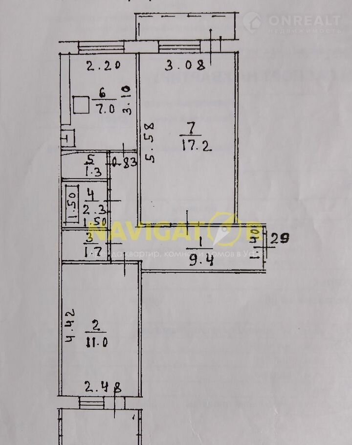 Площадь кухни 7 м2