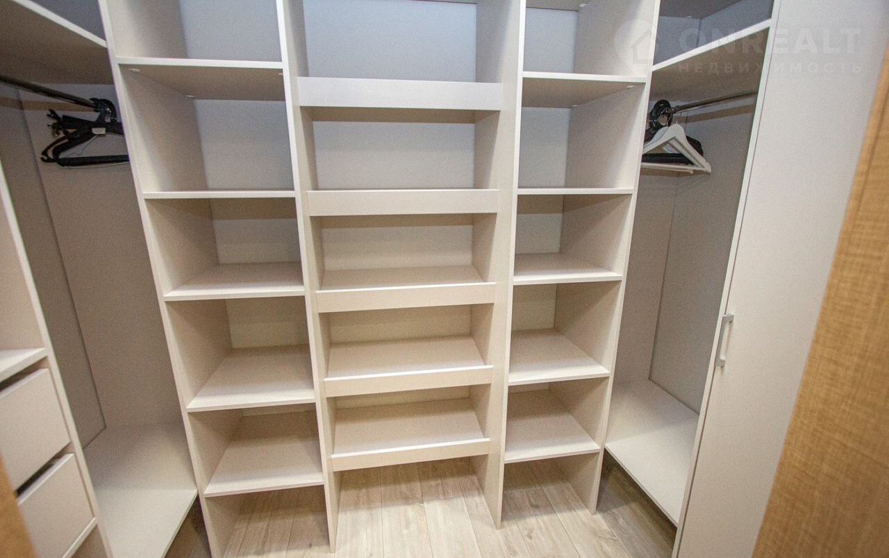 Дизайн выполнен с душой и вниманием к деталям. Вы почувствуете себя как дома в уютной спальне и стильном кабинете, который можно использовать как спальню. А просторная гардеробная зона станет вашим личным пространством для хранения.