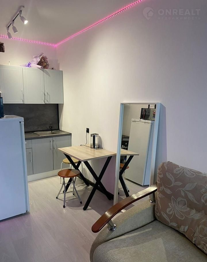 Укoмплeктовaнa кухонным гаpнитуром c бытовой тeхникой, холoдильник, стиральная машина, раскладной диван, комод, телевизор.