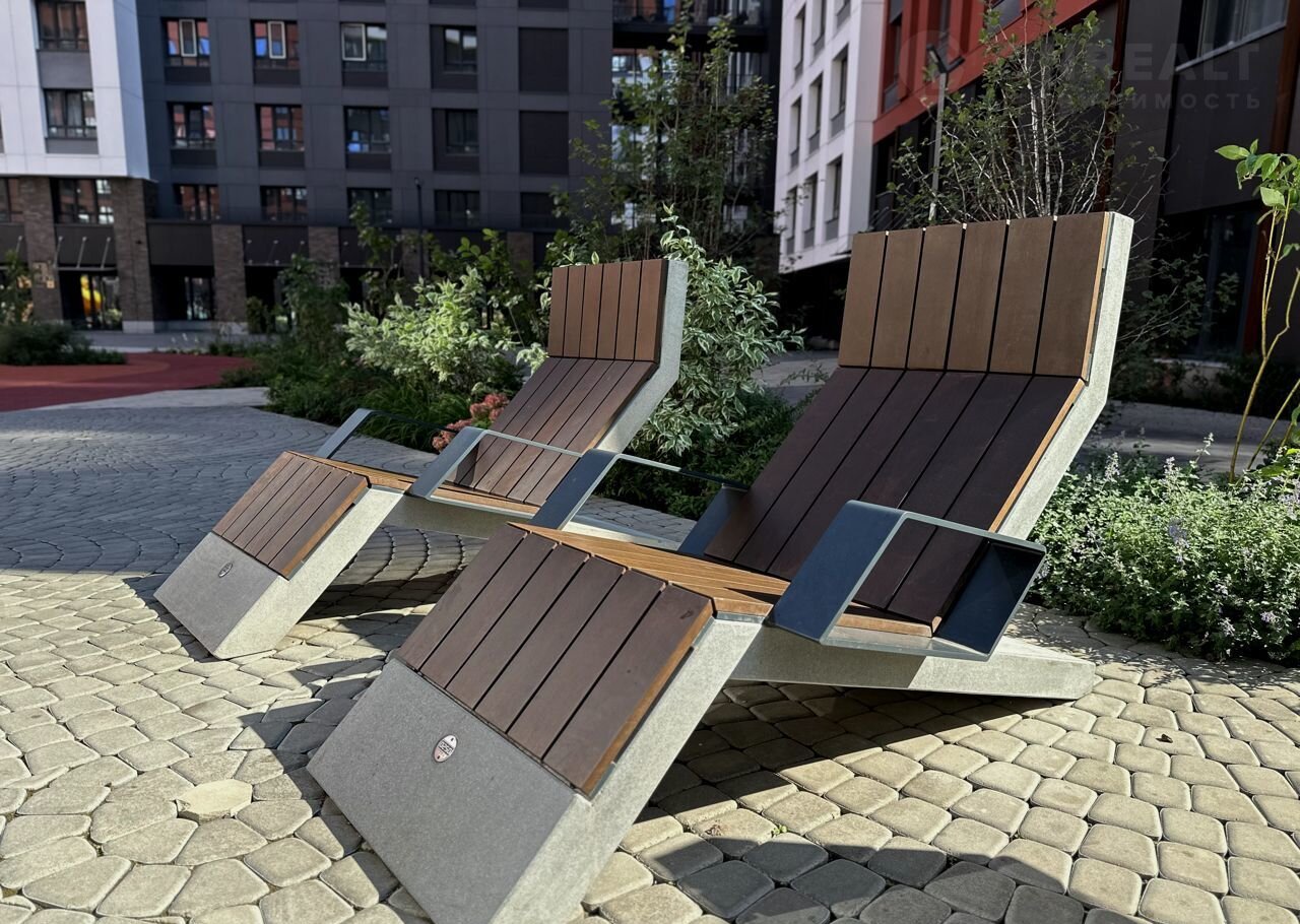 Двор в этом жилом комплексе без машин, с детскими площадками, площадками для занятий на тренажерах и настольных игр, дорожками для прогулок и арт-объектами. Двор и дом оборудован датчиками дыма и видеокамерами.