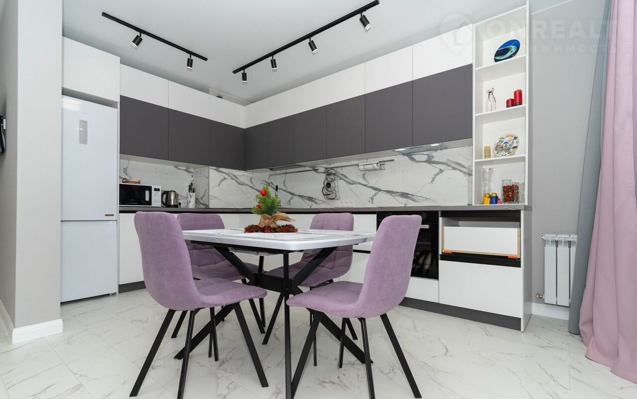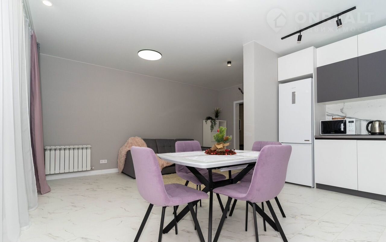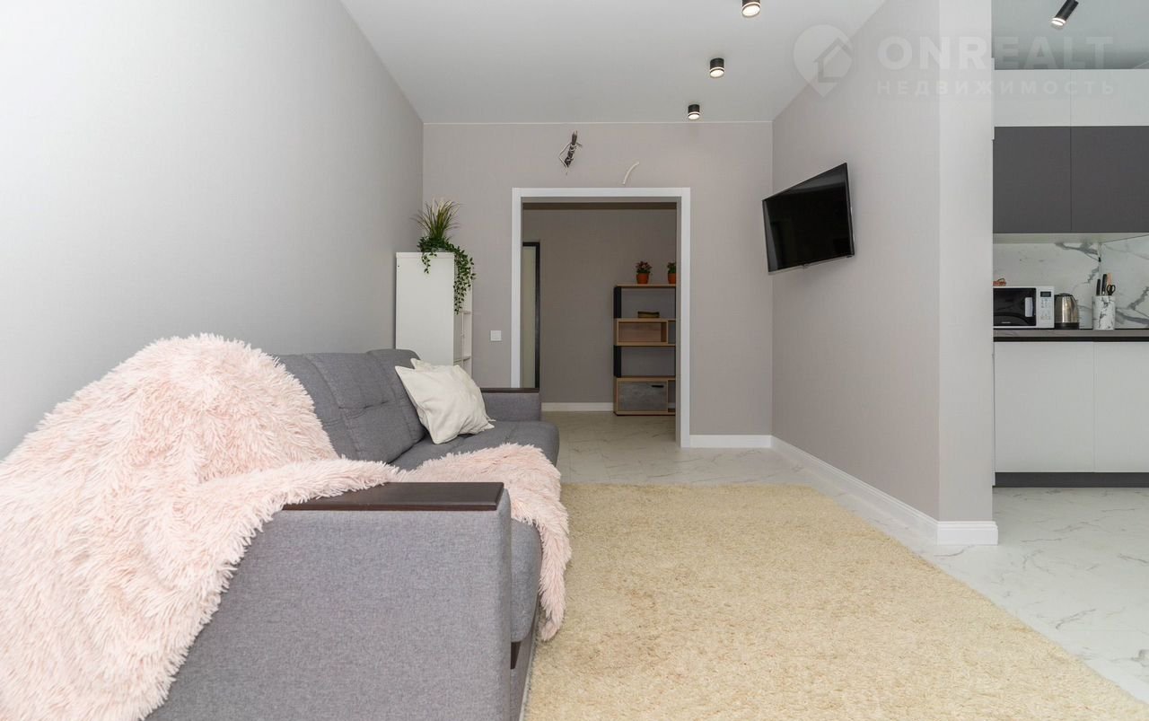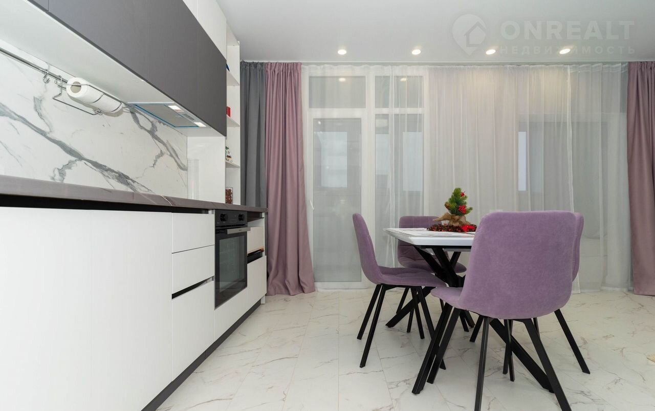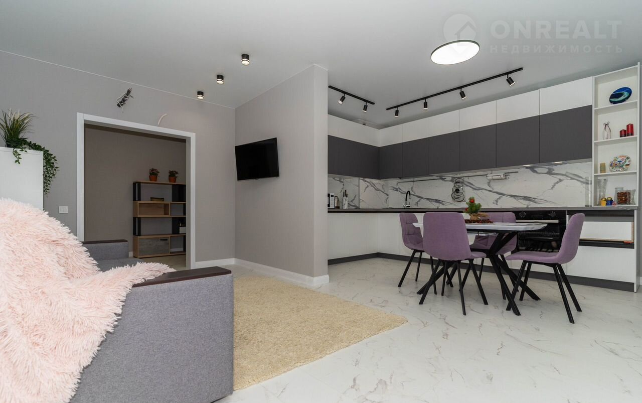 - Просторная кухня, соединенная с гостиной зоной, в которой расположен удобный раскладной диван