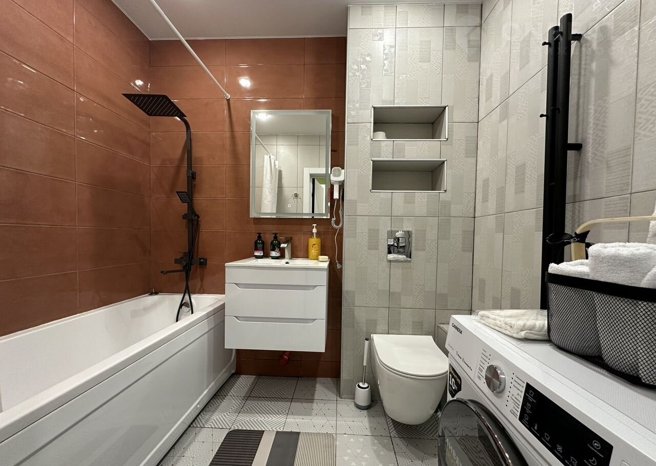 В квартире ванная с тропическим душем, полотенца, принадлежности гигиены, диван раскладывается 160*220, имеется чистое глаженное бельё премиум качества : страйп -Сатин , телевизор с приставкой на 1000 каналов, стиральная машина, гладильная доска , сушилка трехсекционная передвижная ,утюг, Wi-Fi. В кухонной зоне находится угловой гарнитур с выдвижной барной полкой с встроенной эл плитой, вытяжкой , холодильник с морозильной камерой. Есть посуда и кухонный инвентарь.