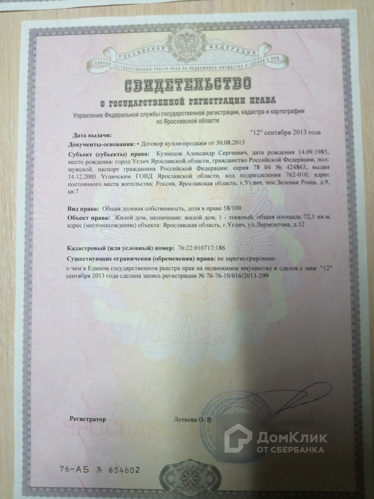 Продается пол дома по ул. Лермонтова д. 12 город Углич.