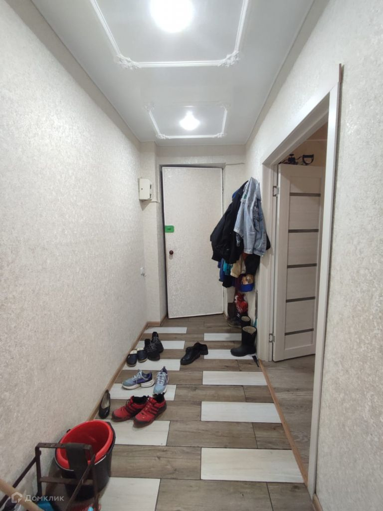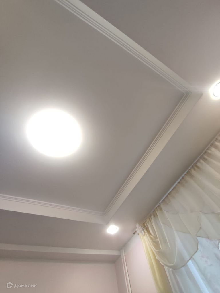 Двух-уровневый потолок в детской и коридоре, натяжной потолок в большой комнате, кухня и ванная-навесной. Хорошие межкомнатные двери.
