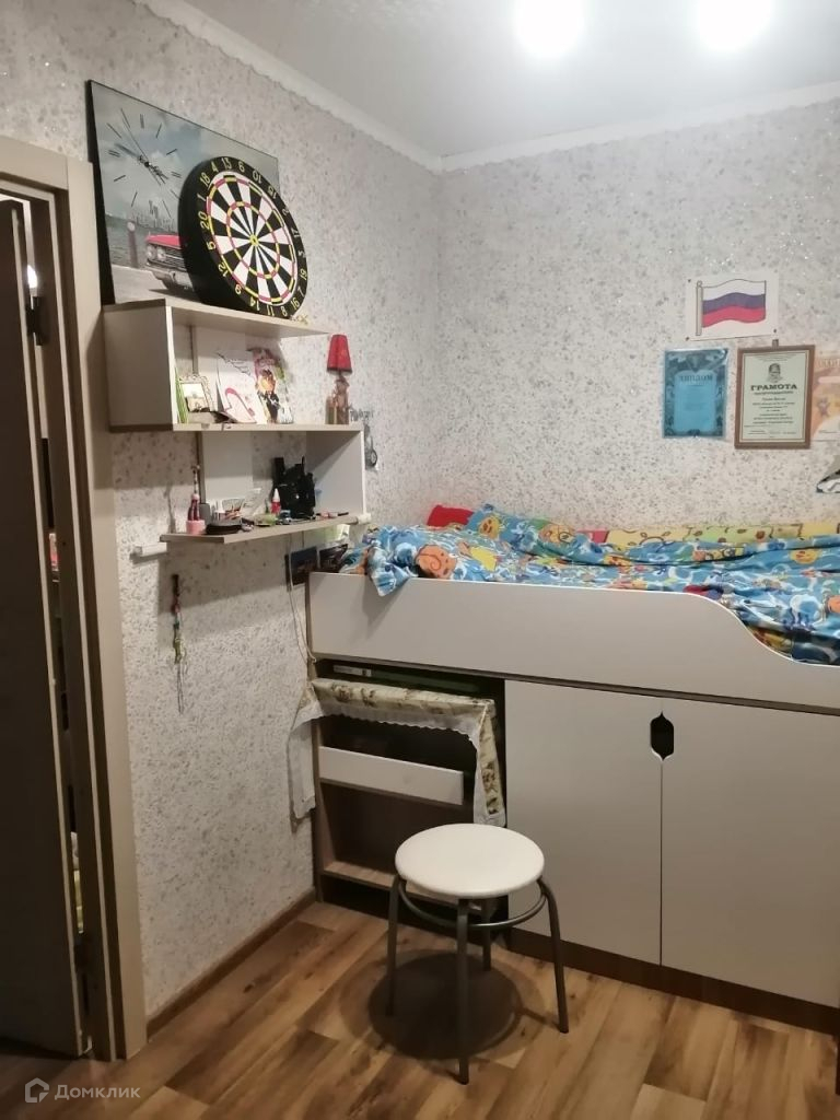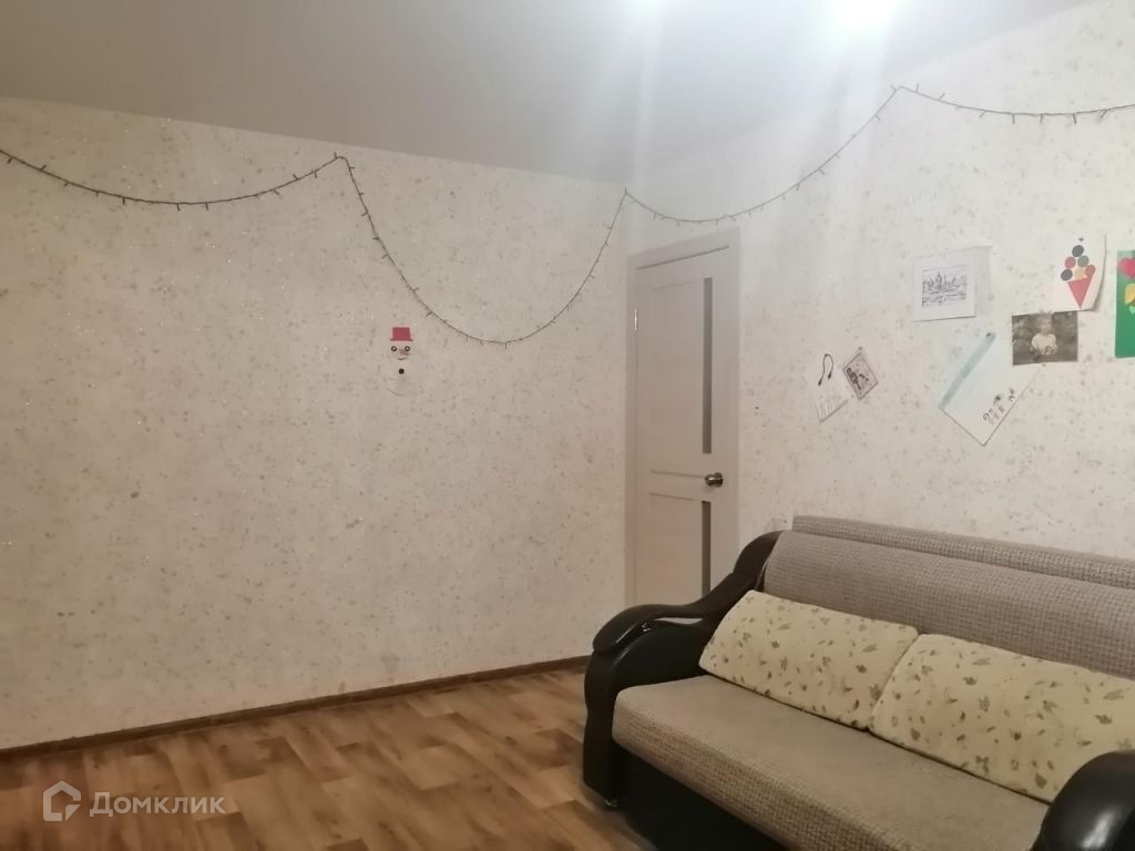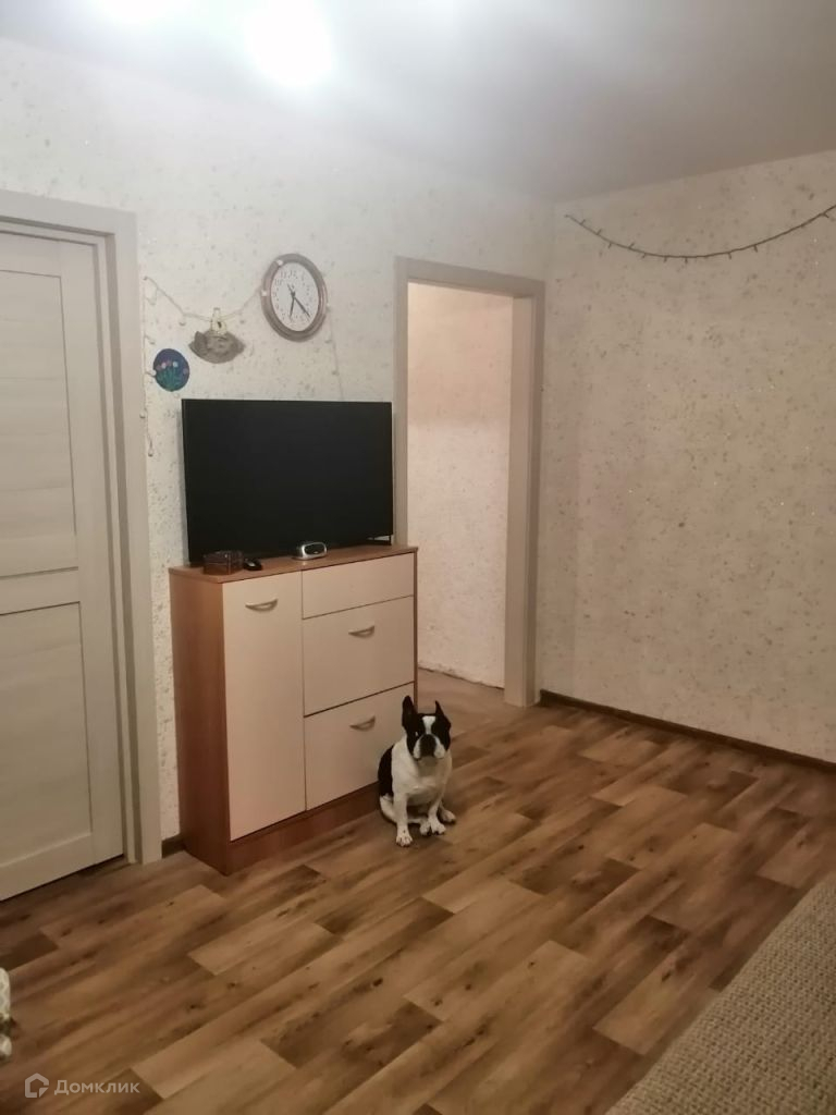 Общая площадь 44, 5 кв. м., кухня 5, 5 кв. м., есть балкон ( не застеклен, выходит на неоживленную дорогу в сторону бывшего хлебозавода). Имеется чулан (кладовая), используется, как гардеробная.