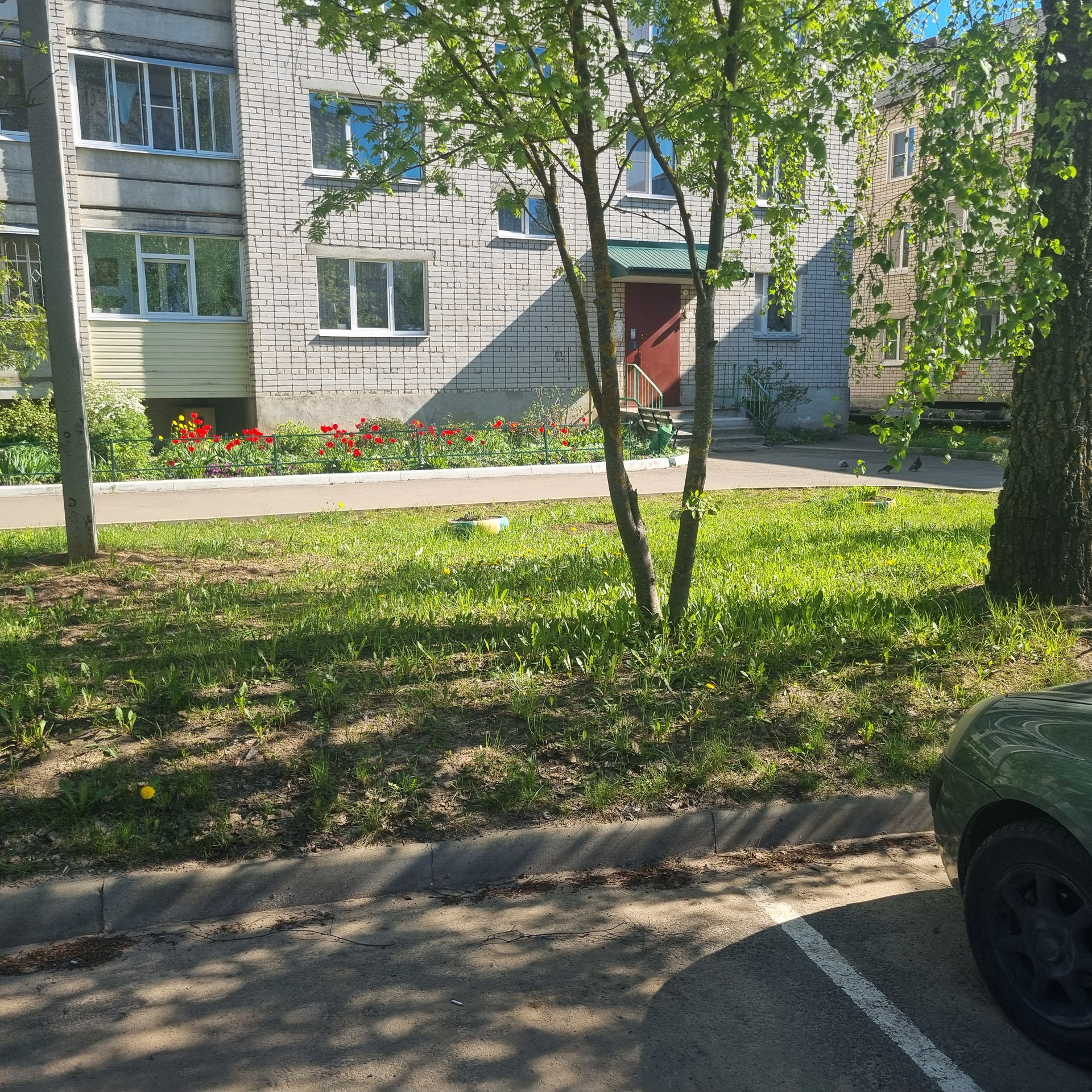 У подъезда стоянка для авто, 3 минуты до детского сада и автобусной остановки.