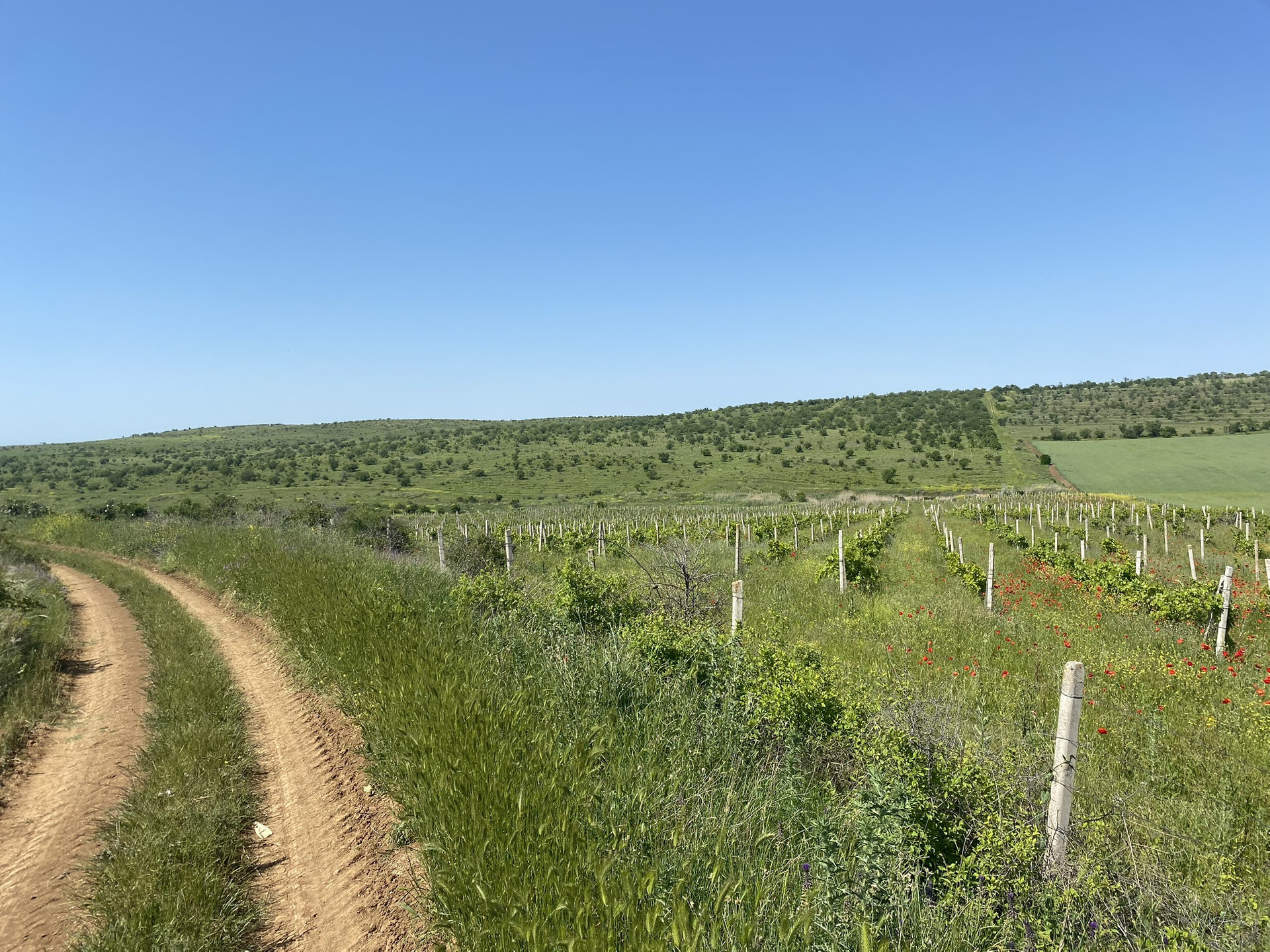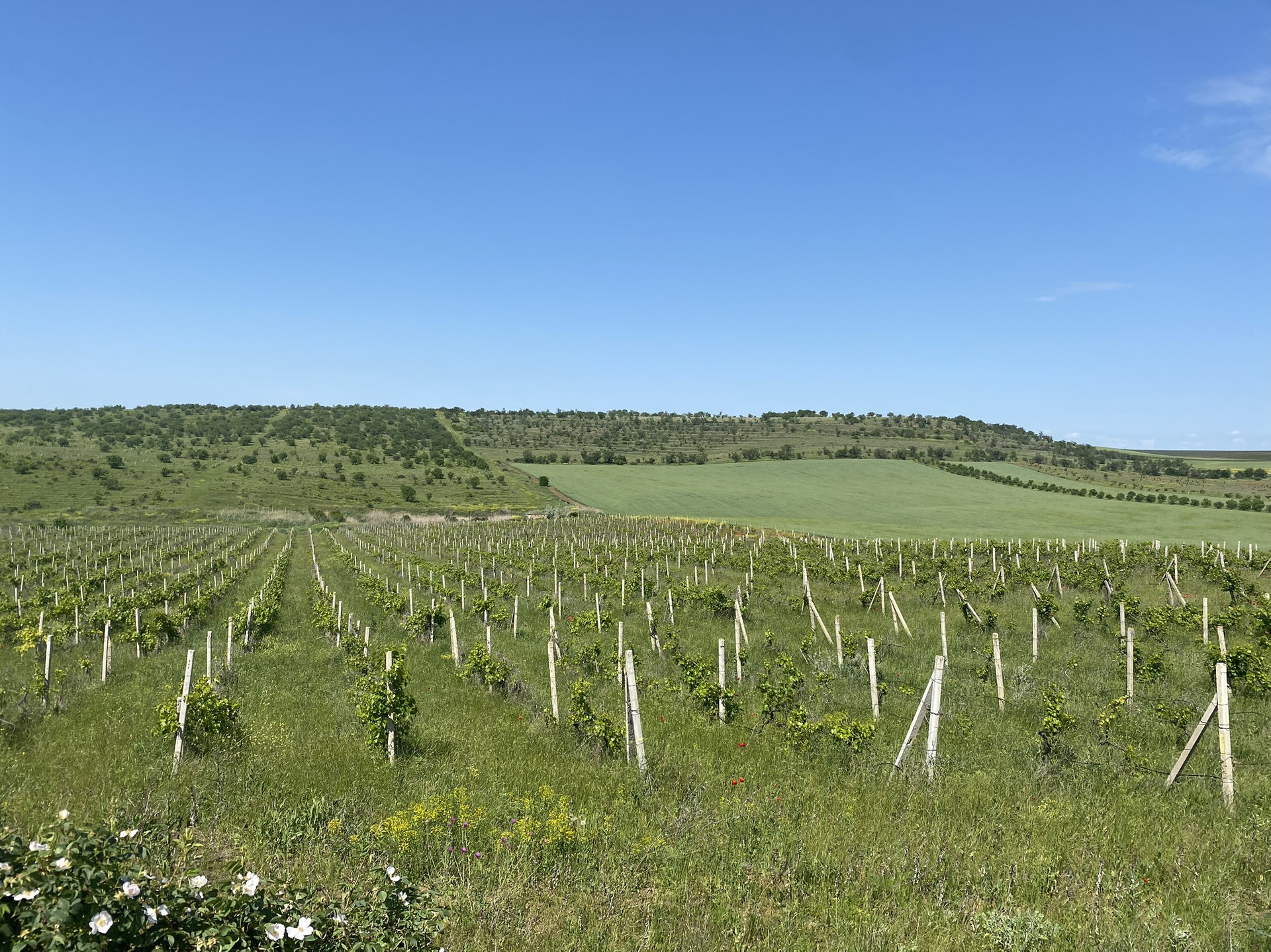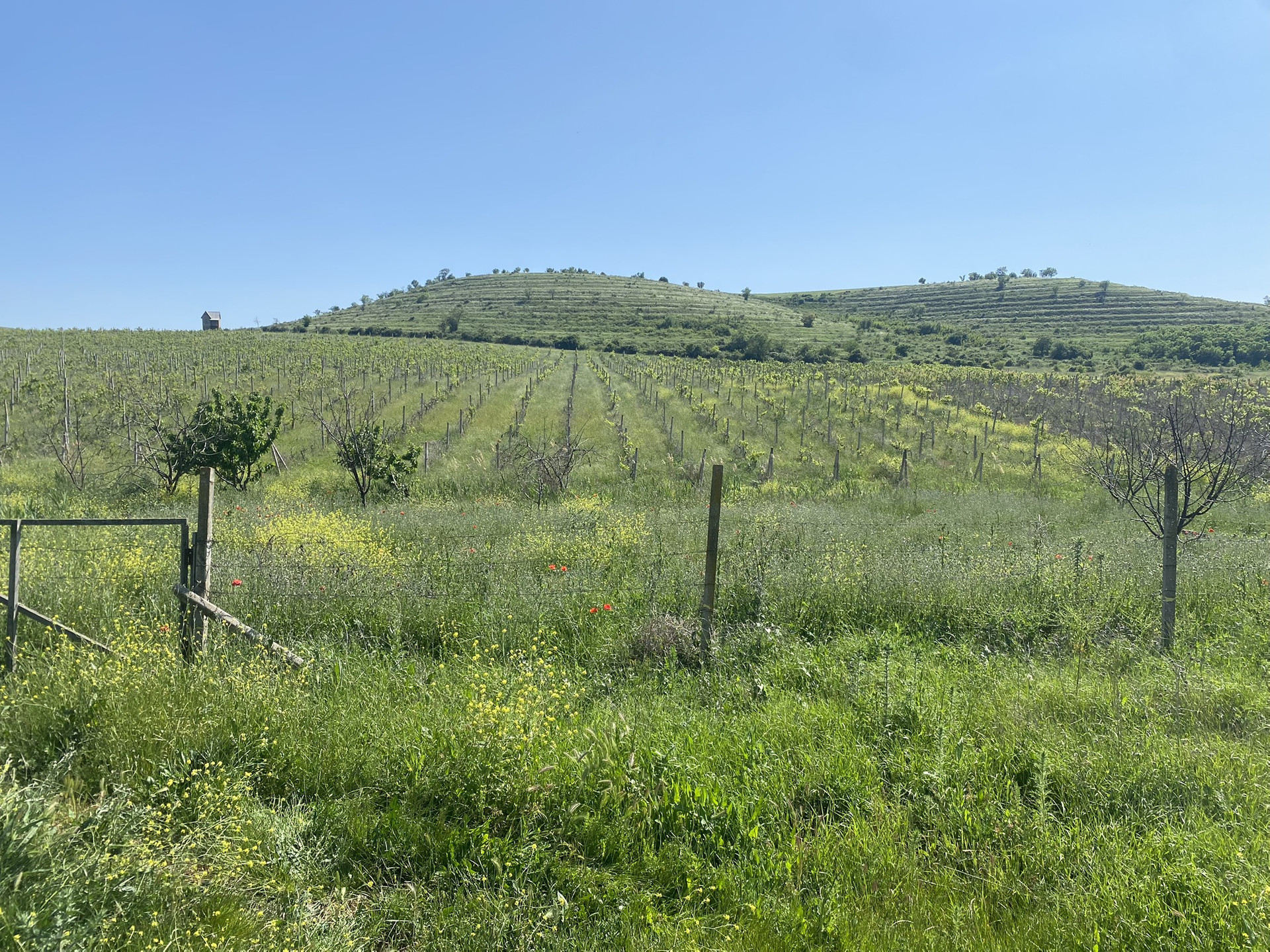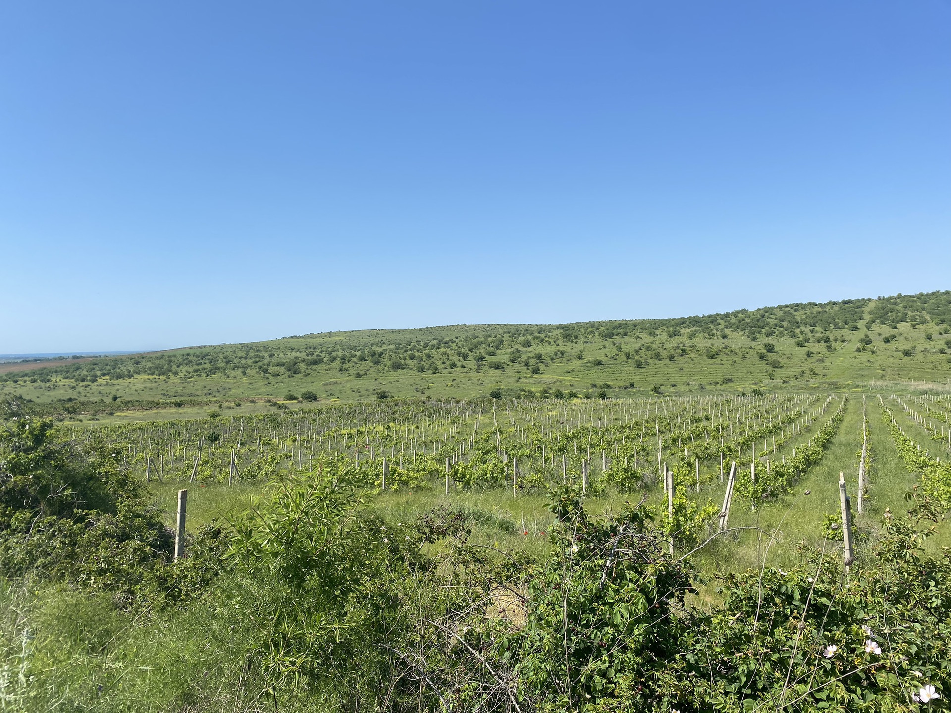 Участок огорожен, произрастает виноград(было высажено 10500шт кустов2014г.) капельный полив , есть на участке  небольшой двухэтажный домик предназначенный для хранения инвентаря и нахождения сторожа.