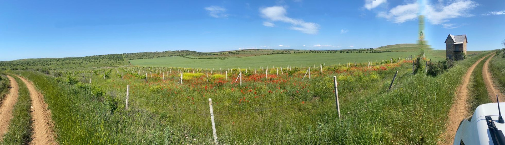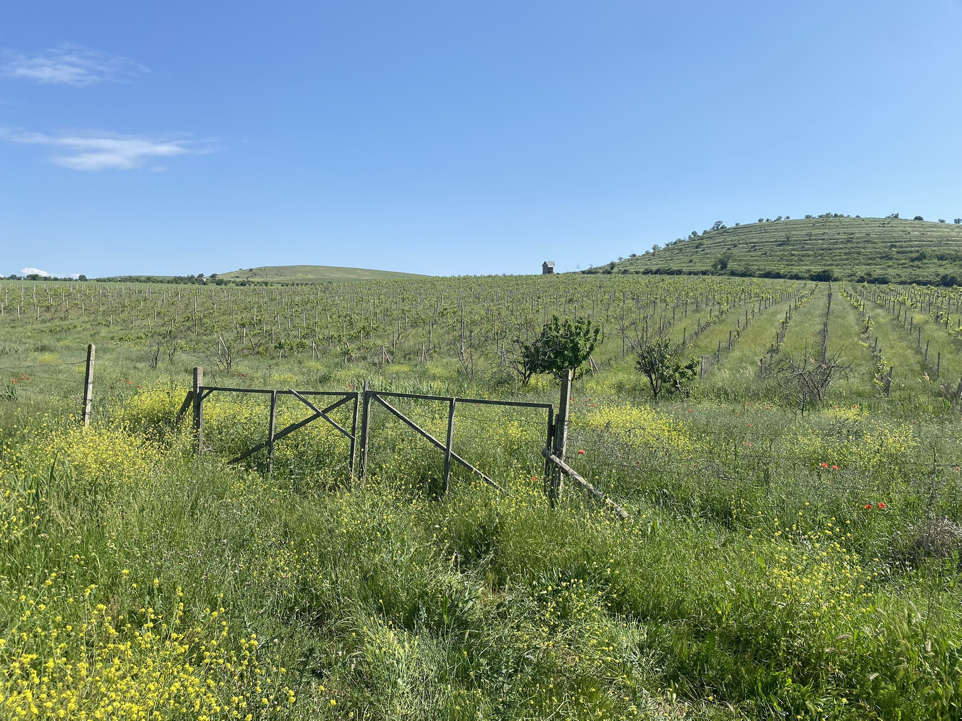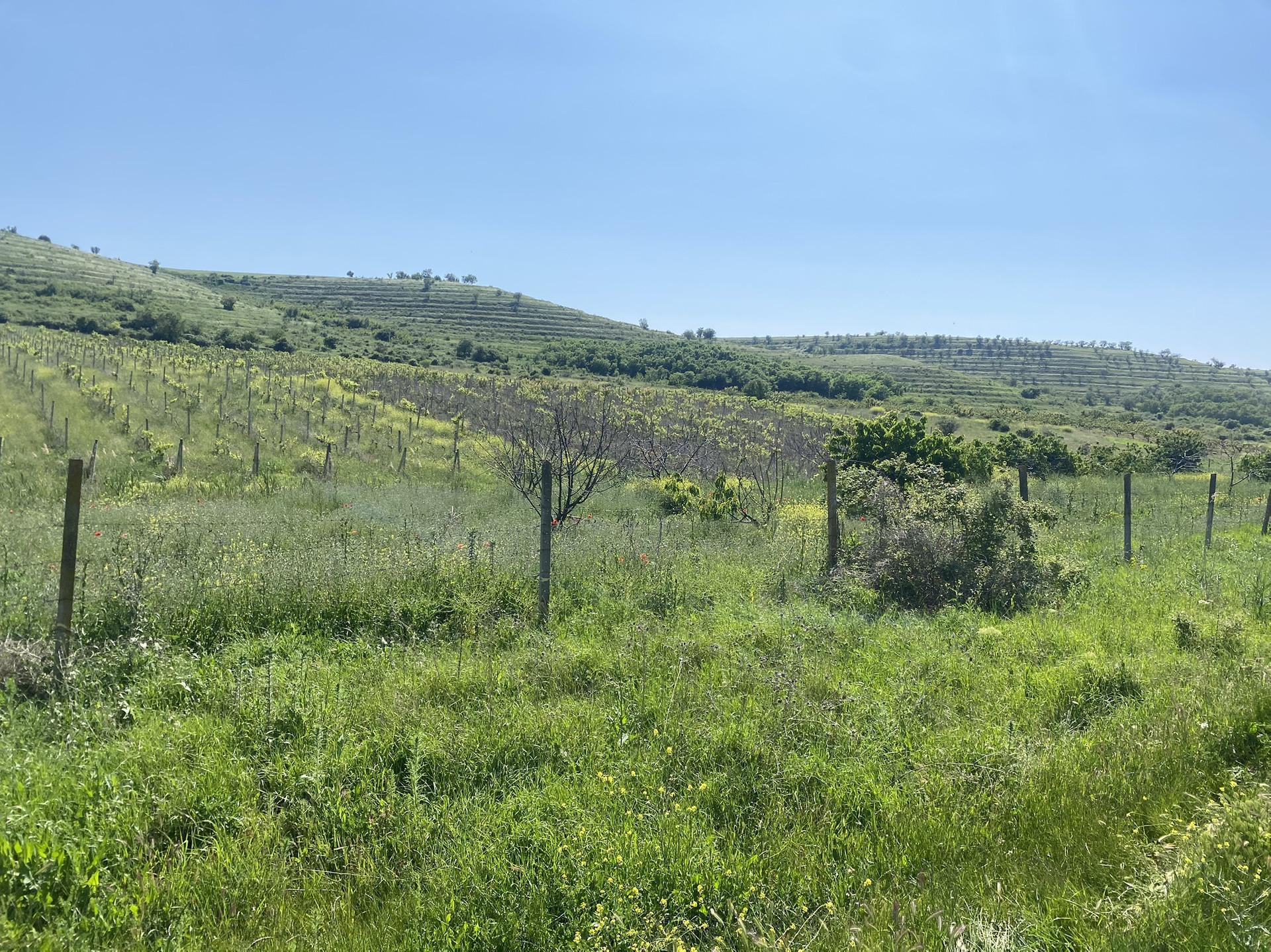 Участок огорожен, произрастает виноград(было высажено 10500шт кустов2014г.) капельный полив , есть на участке  небольшой двухэтажный домик предназначенный для хранения инвентаря и нахождения сторожа.
